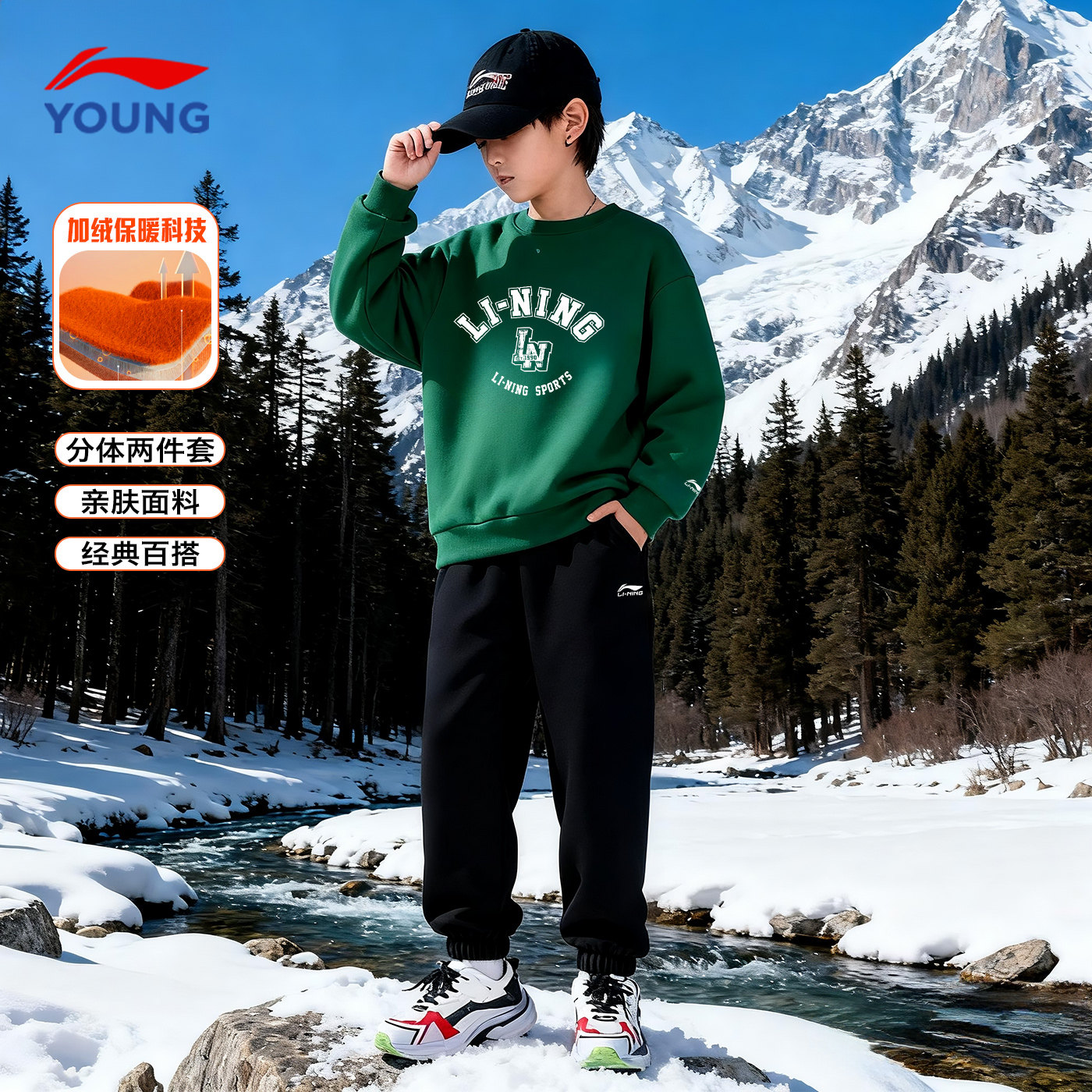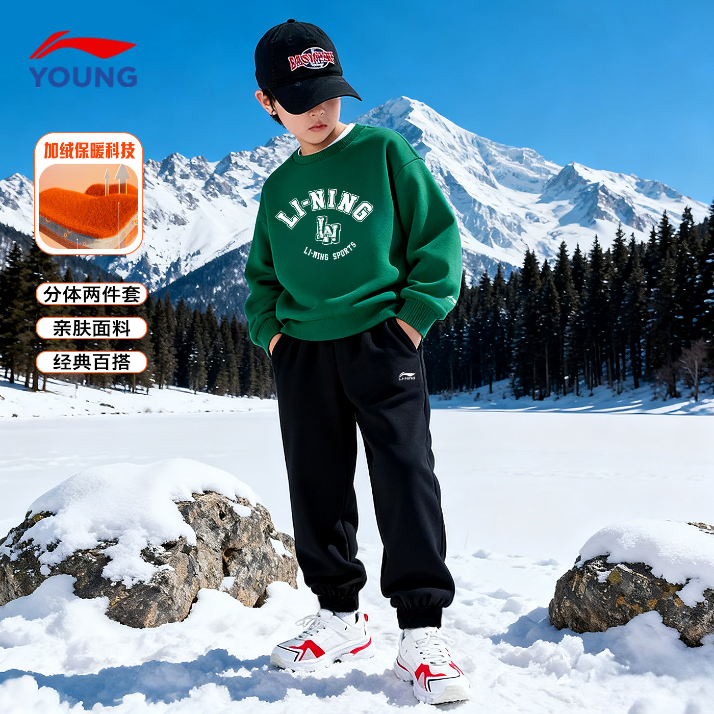 311线报网描述:李宁儿童童装加绒卫衣2025新款棉