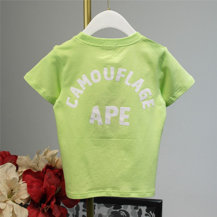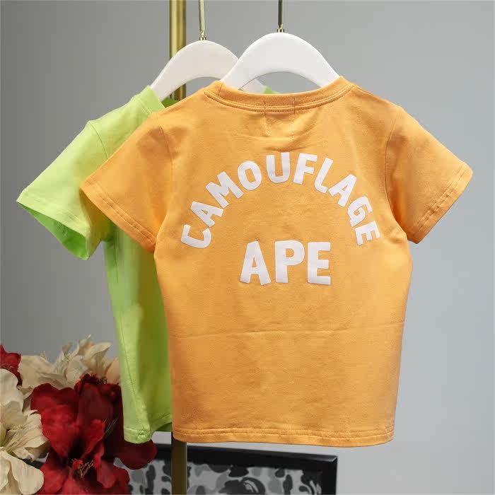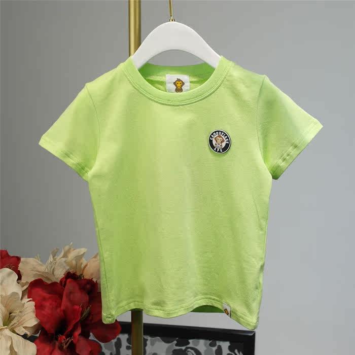 童装夏新款男童女童纯棉潮牌荧光绿橘色短袖T恤 宝宝弹力半袖背心
