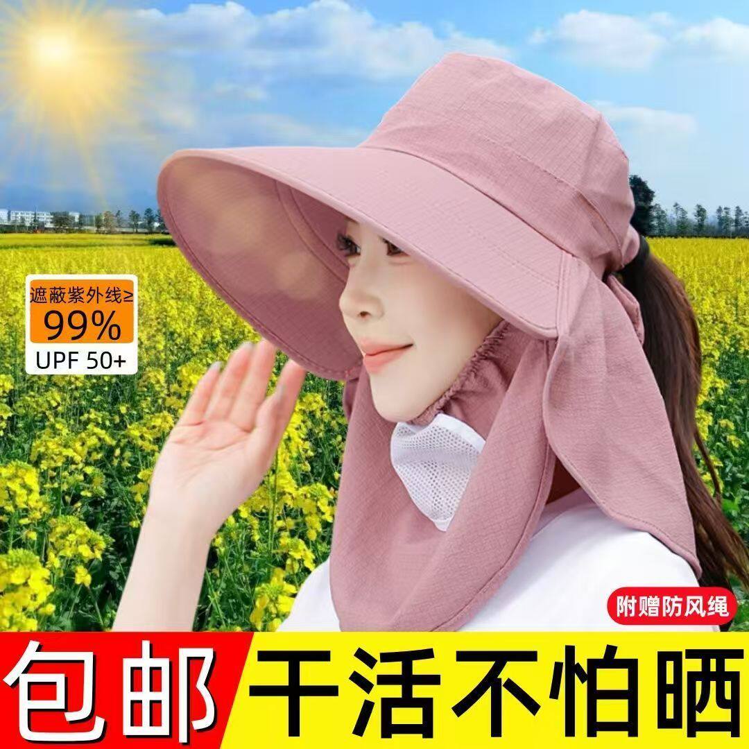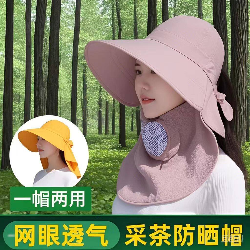 帽子女防晒遮阳帽披肩帽子女士帽防尘防晒帽夏天采茶帽户外遮光帽