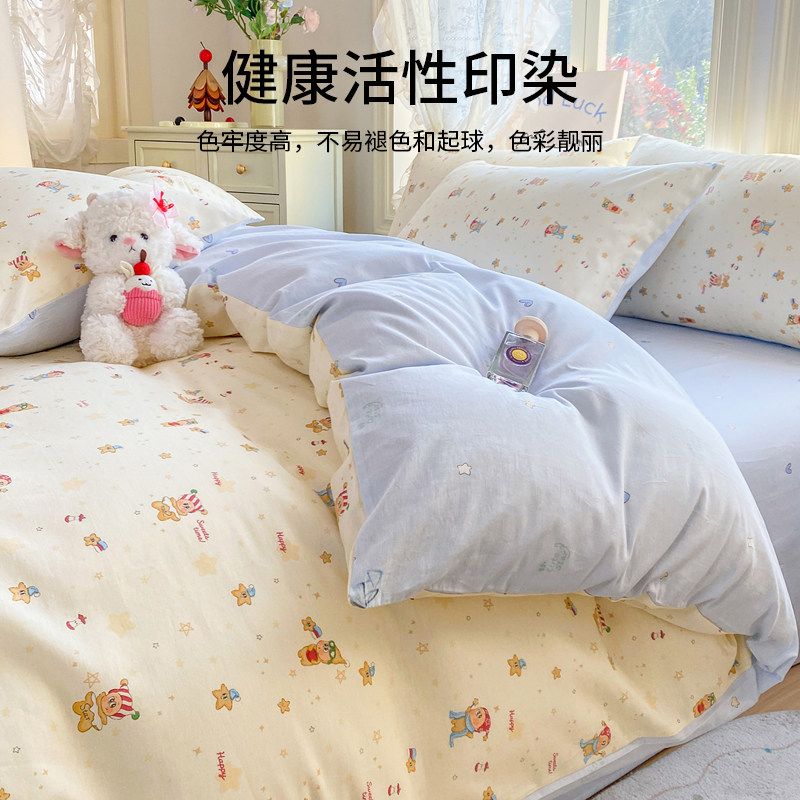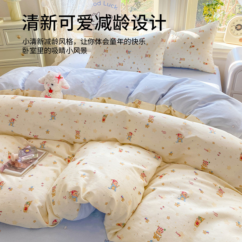 无印良品春夏小清新全棉床上四件套纯棉被套床单儿童宿舍三件套