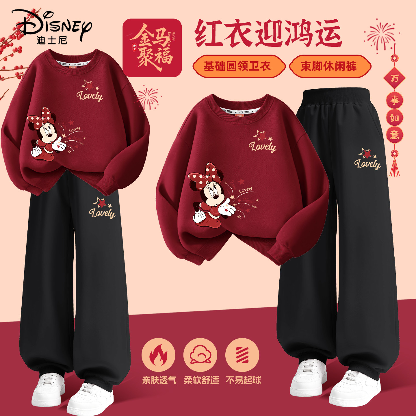 迪士尼拜年服女童不加绒唐装2026新款卫衣小女孩喜庆新年儿童套装