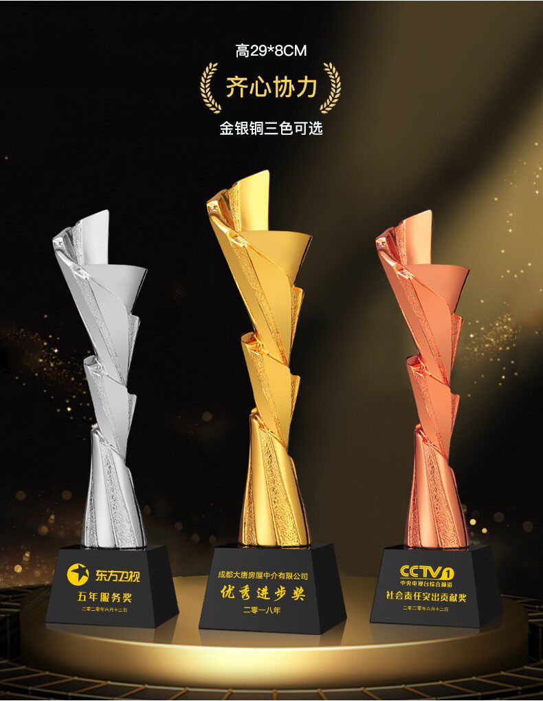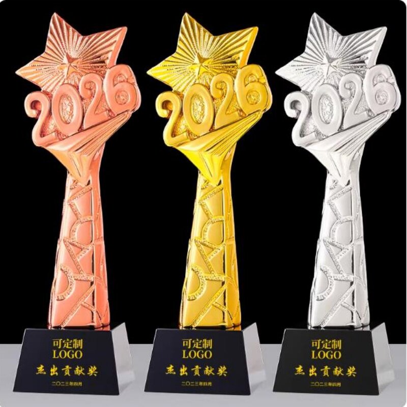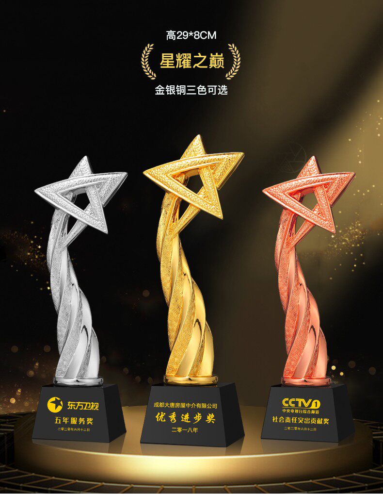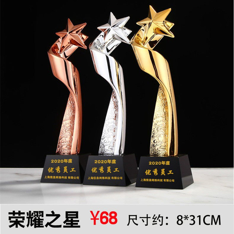 金银铜树脂水晶奖杯刻字定制做年会颁奖员工大拇指金属五角星奖牌