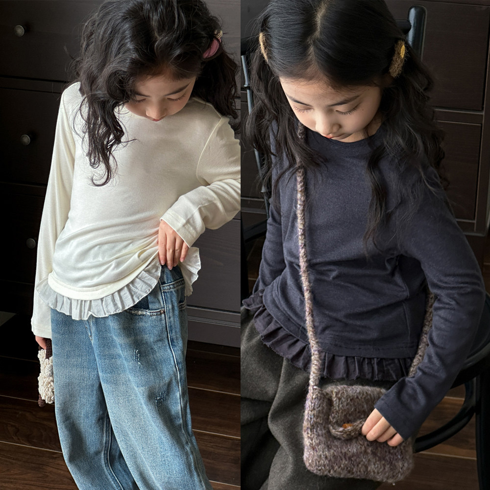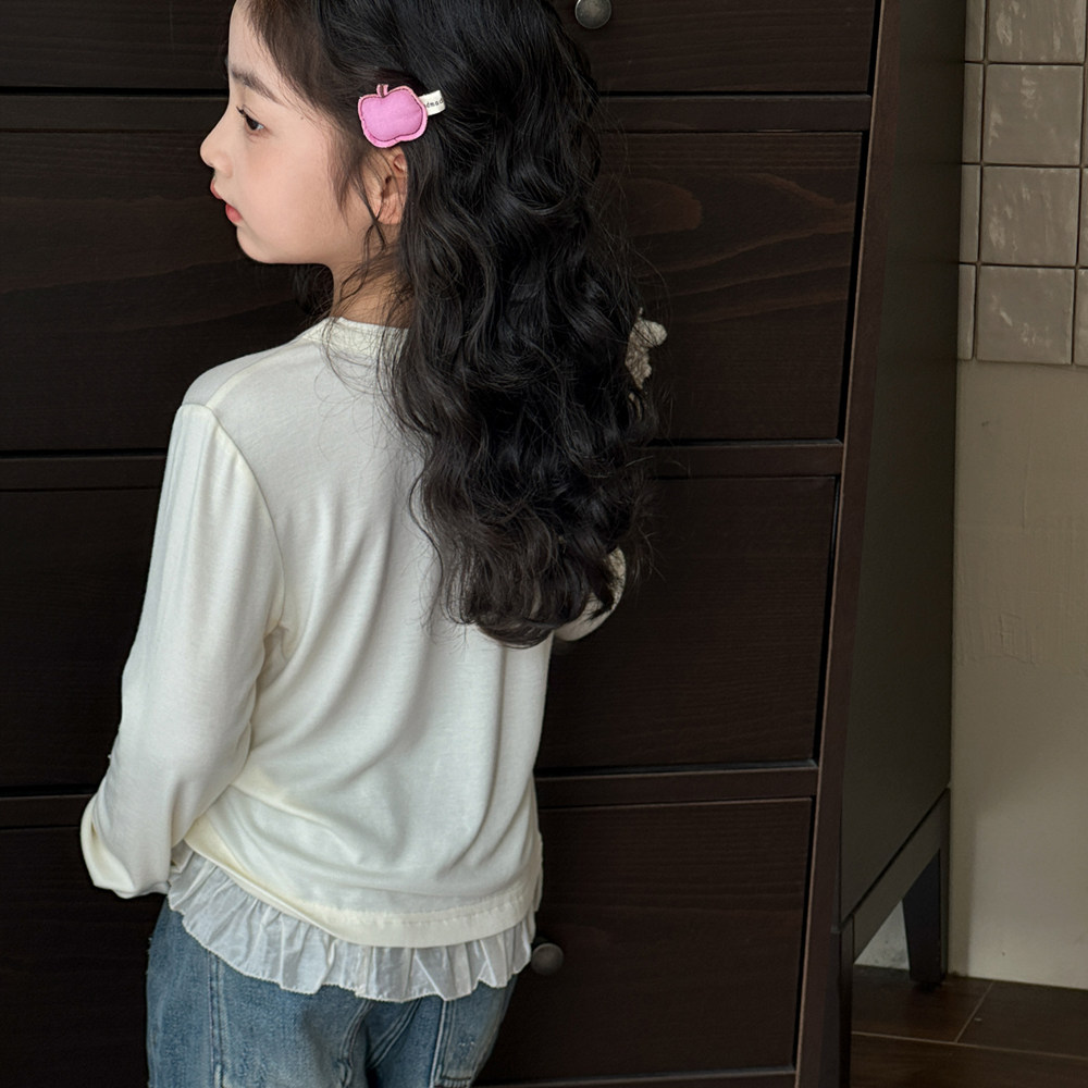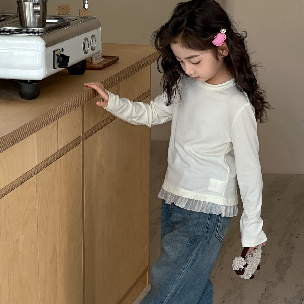 女童打底衫春季圆领内搭套头新款儿童春秋款纯棉白色花边长袖上衣