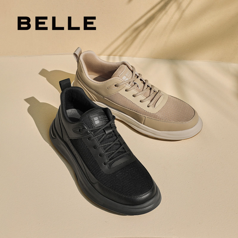 百丽男鞋厚底增高网面透气运动鞋男士款商务运动休闲鞋子A1715CM4