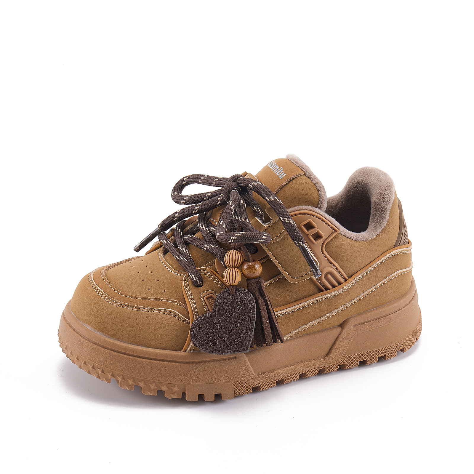 小米步女童板鞋2025冬季新款儿童纯色加绒运动休闲鞋男童保暖鞋子