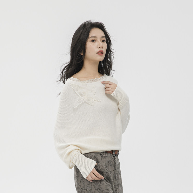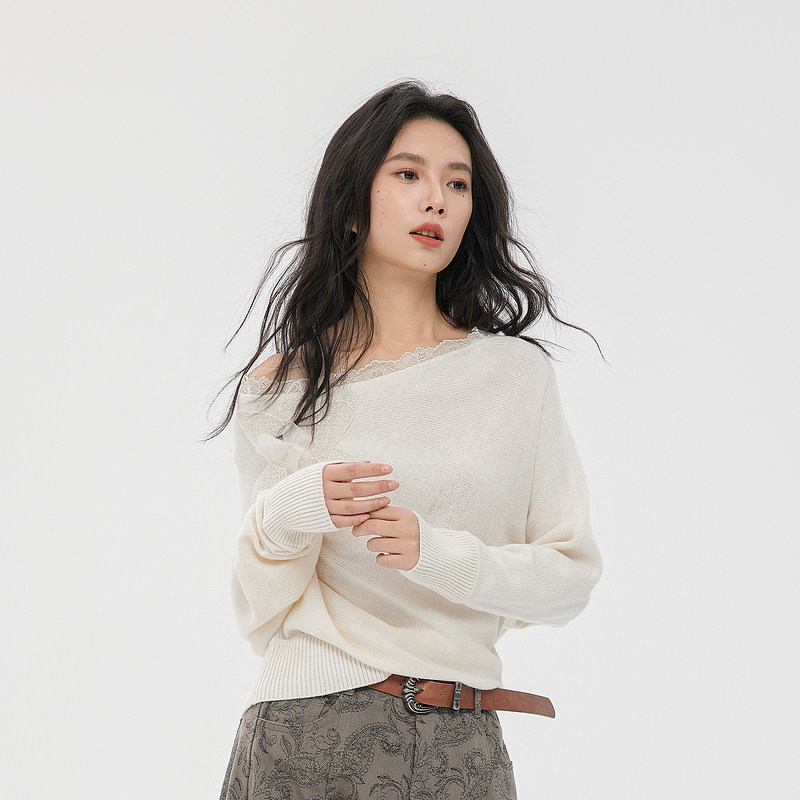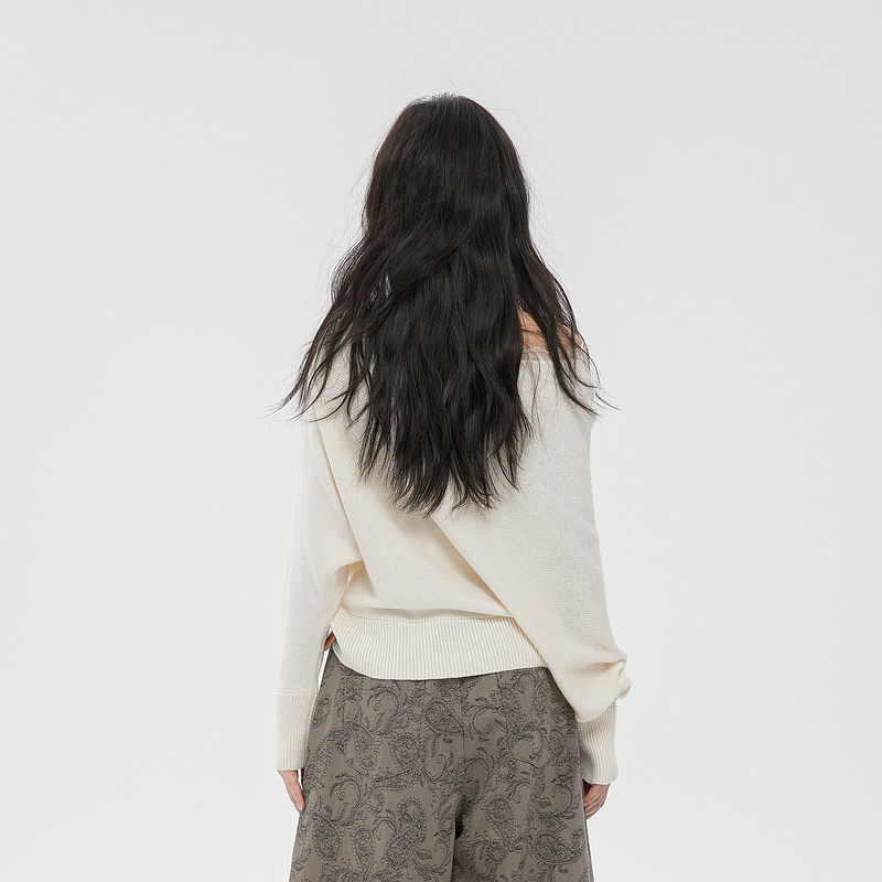 记忆的起点套头毛衣2026春季新款时尚气质露肩针织上衣70GC52049