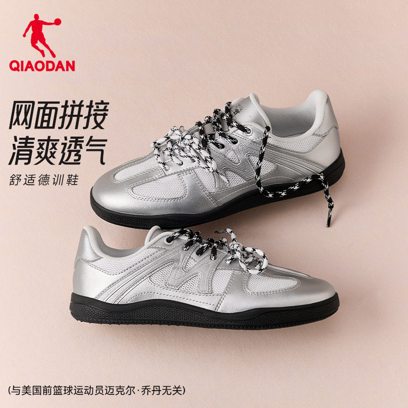 乔丹银色芭蕾风德训鞋运动鞋女款2026夏季透气百搭平底板鞋休闲鞋