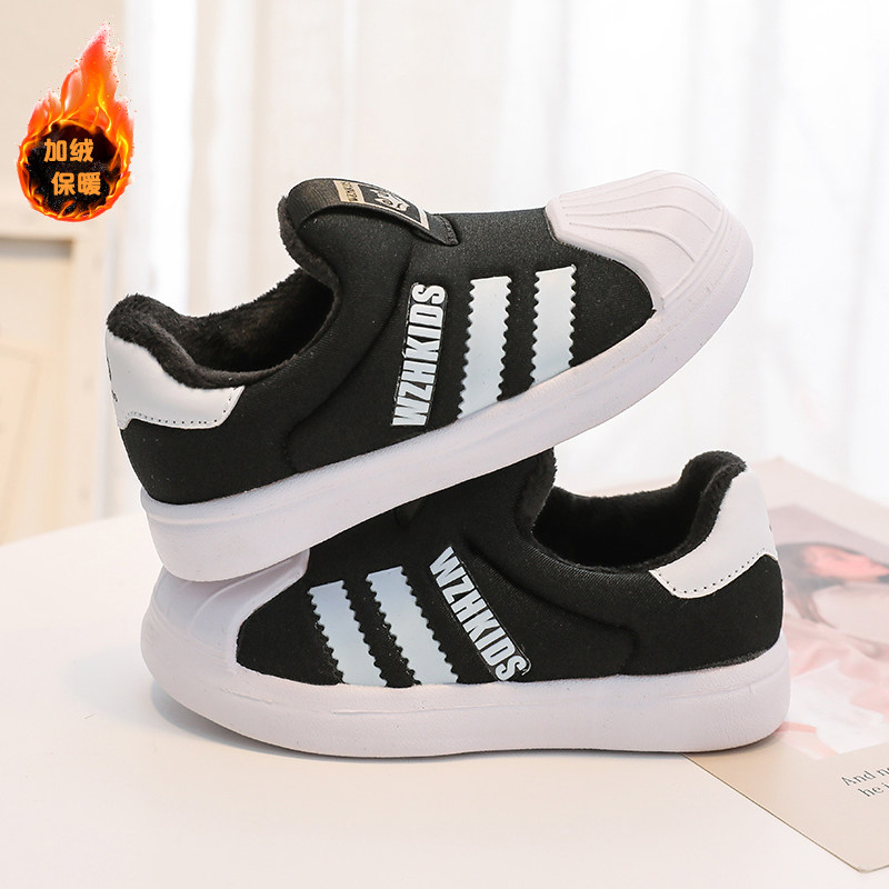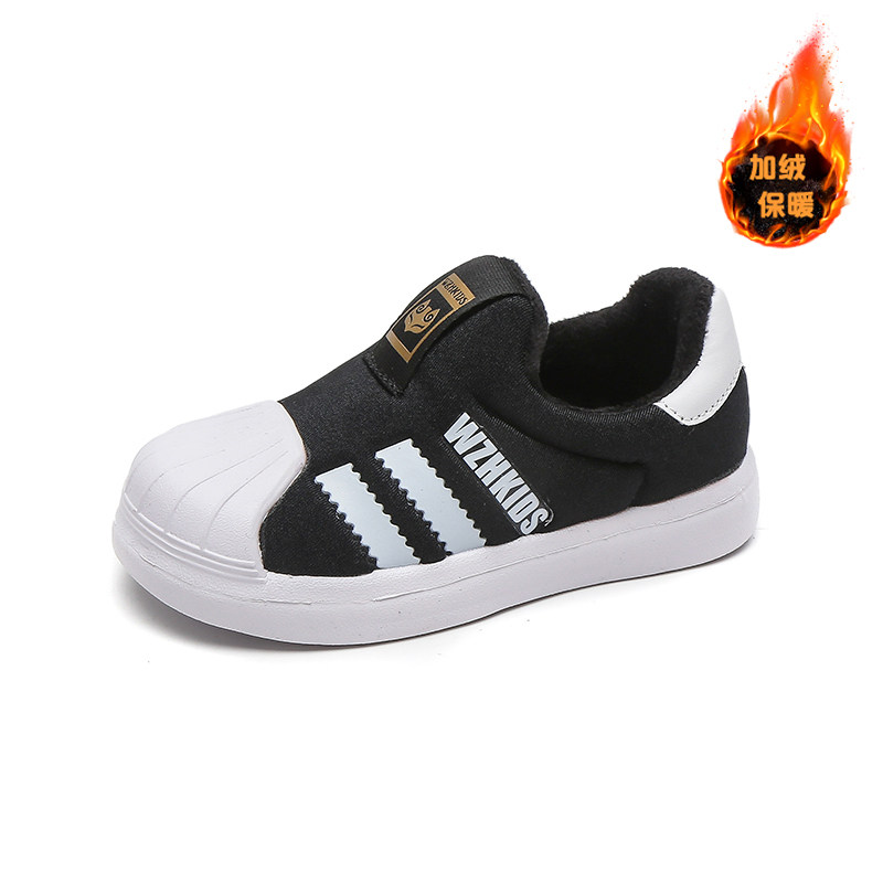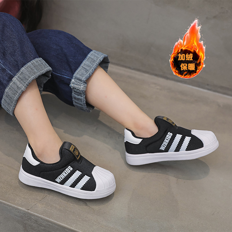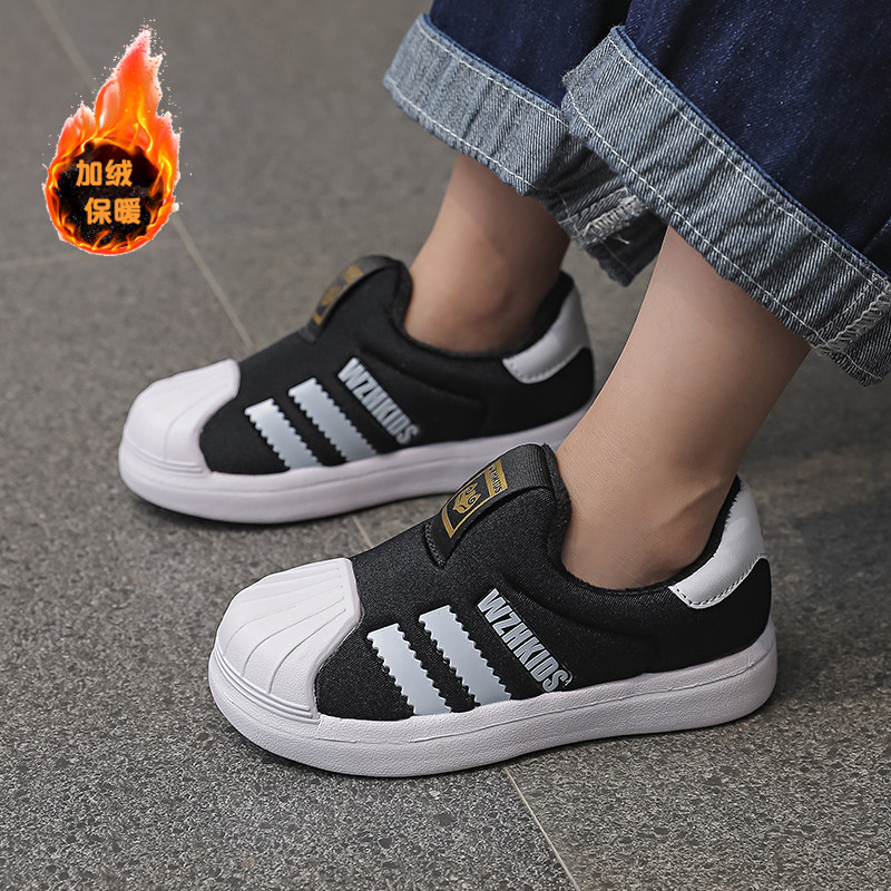 断码清仓儿童冬款加绒贝壳头板鞋男童一脚蹬鞋女童时尚休闲运动鞋