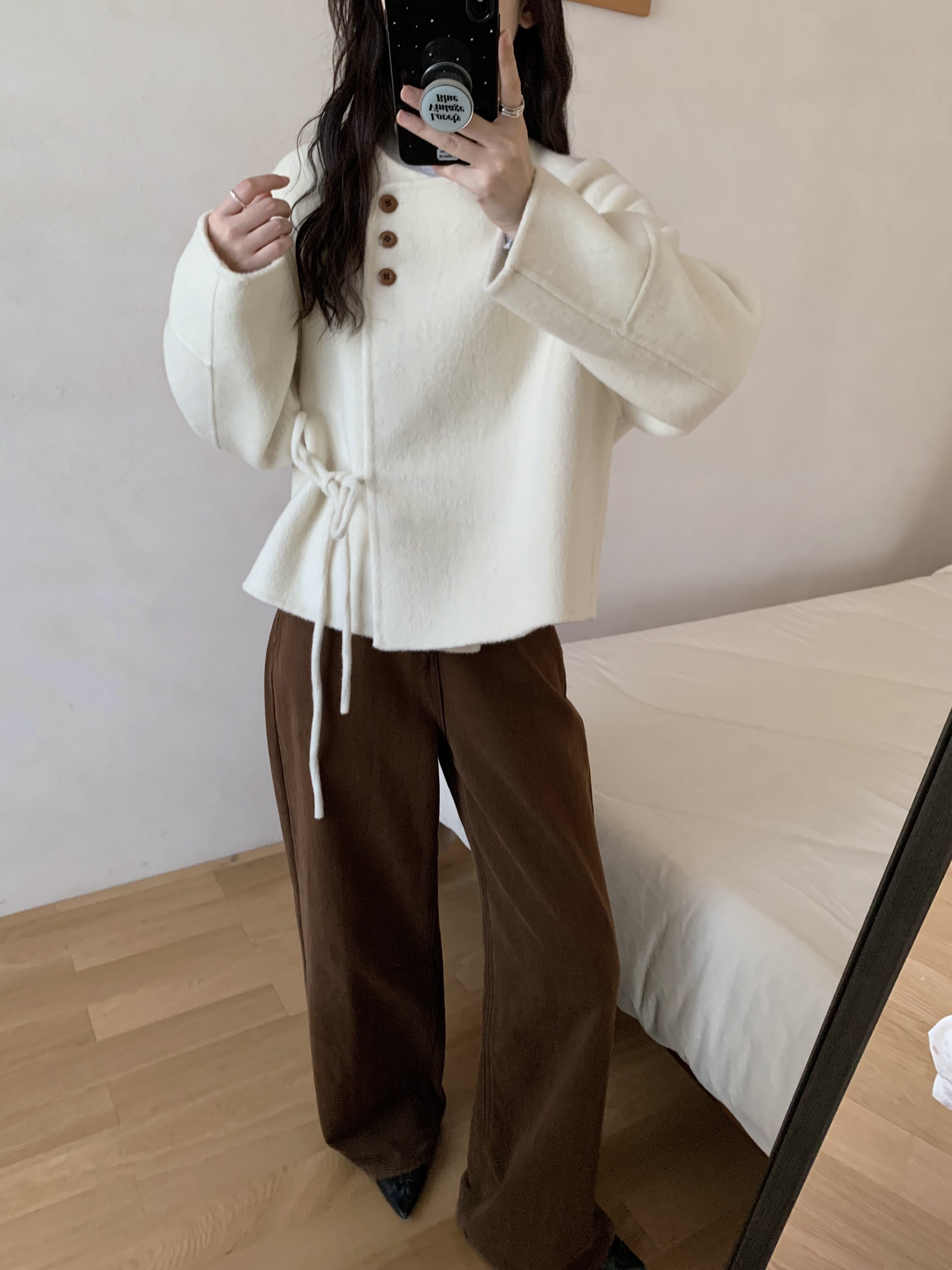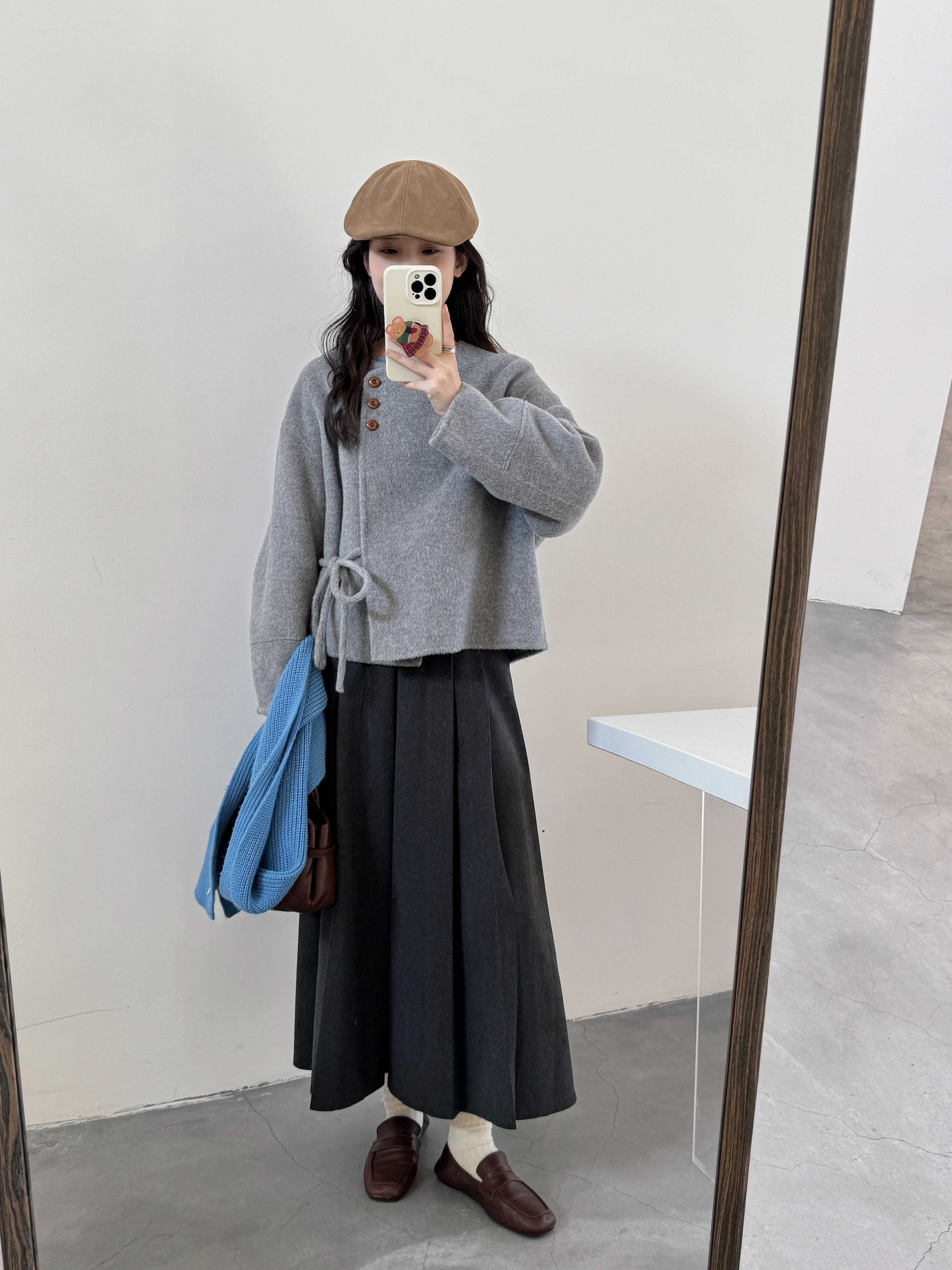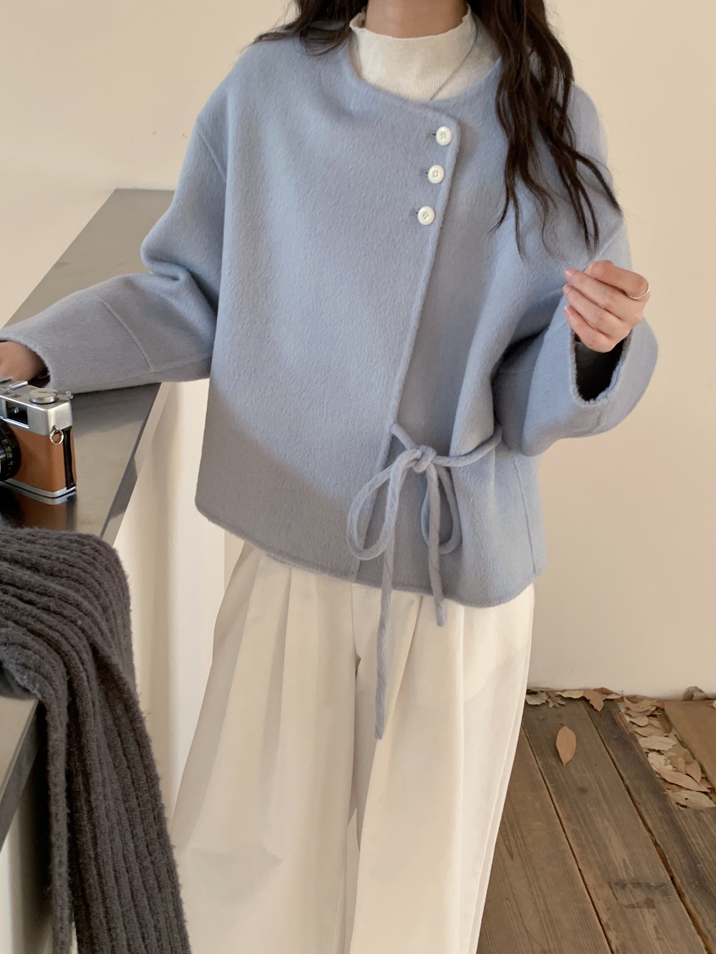 2025秋冬季新款韩系浅灰色双面羊绒大衣女短款小个子羊毛呢子外套