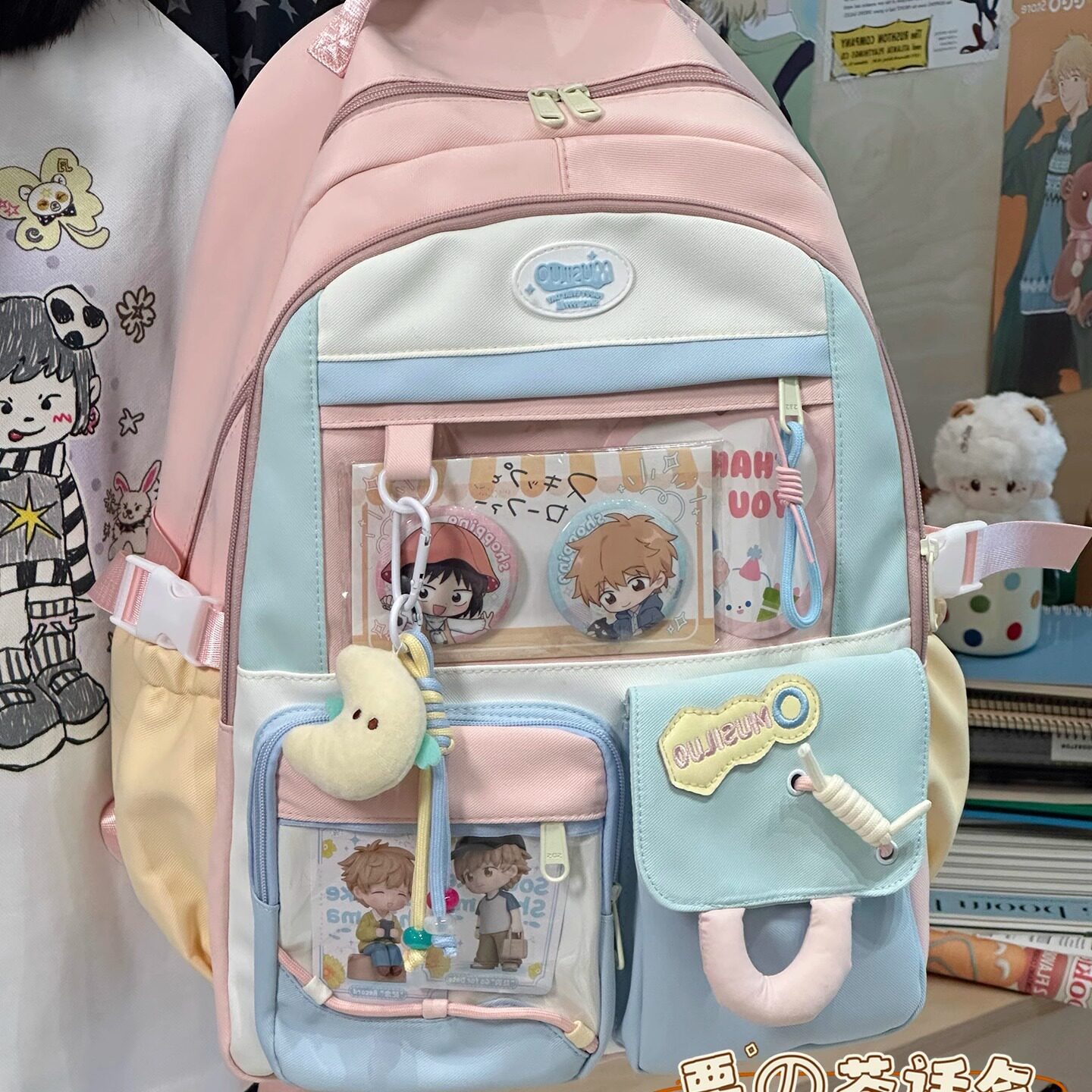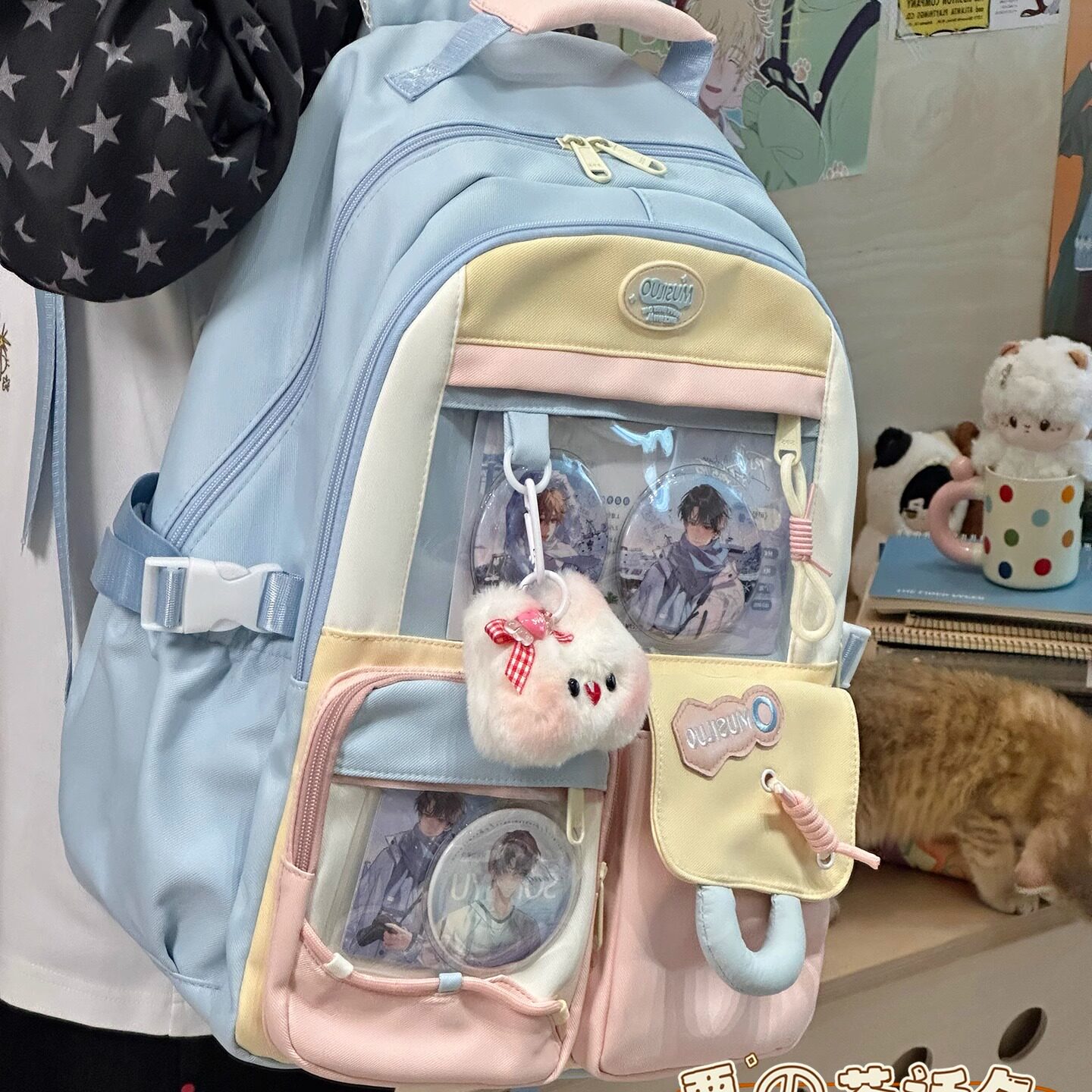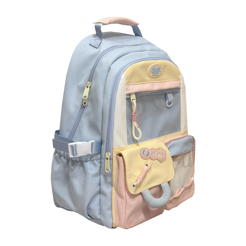 高颜值ins双肩包女多巴胺痛包初中学生大容量书包黑色紫色透明