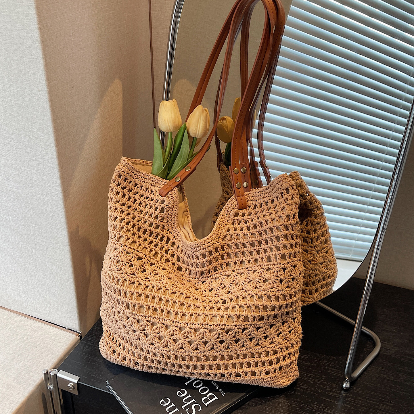 手工编织水桶包包女款2026新款春夏百搭度假风单肩包大容量托特包