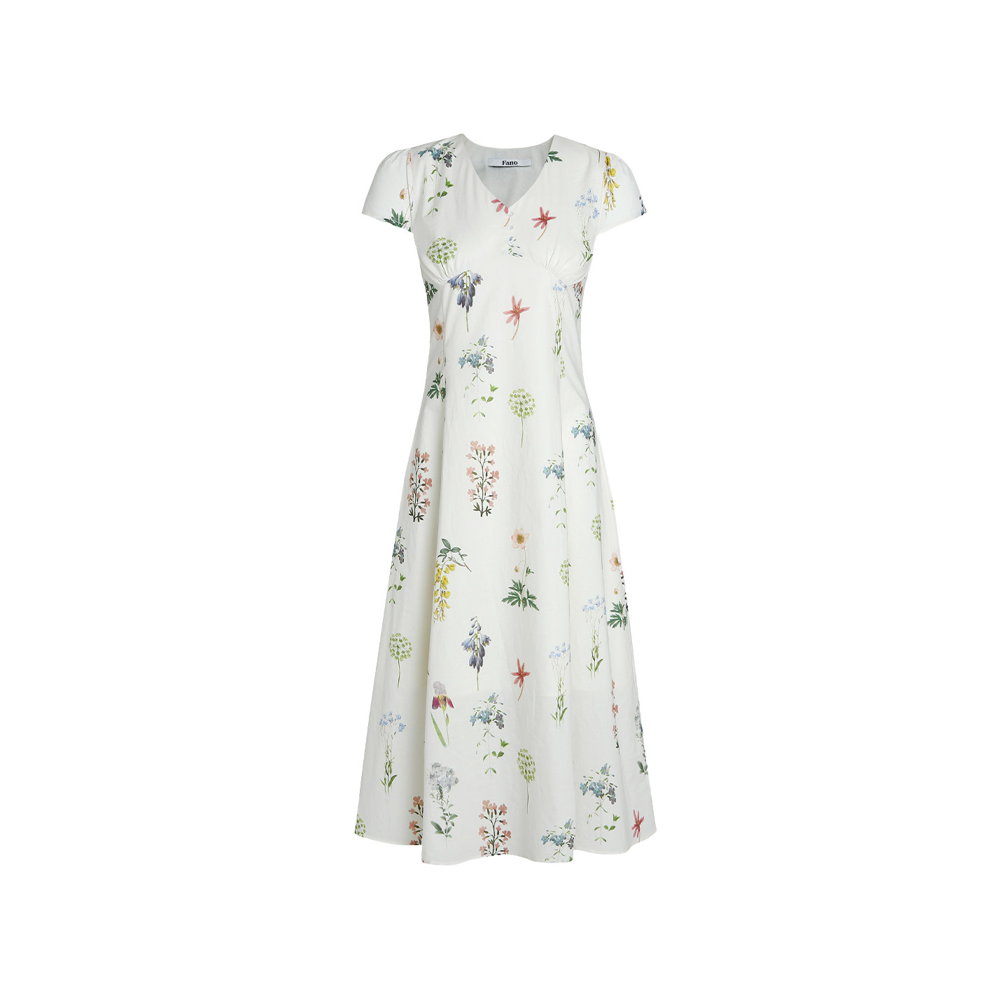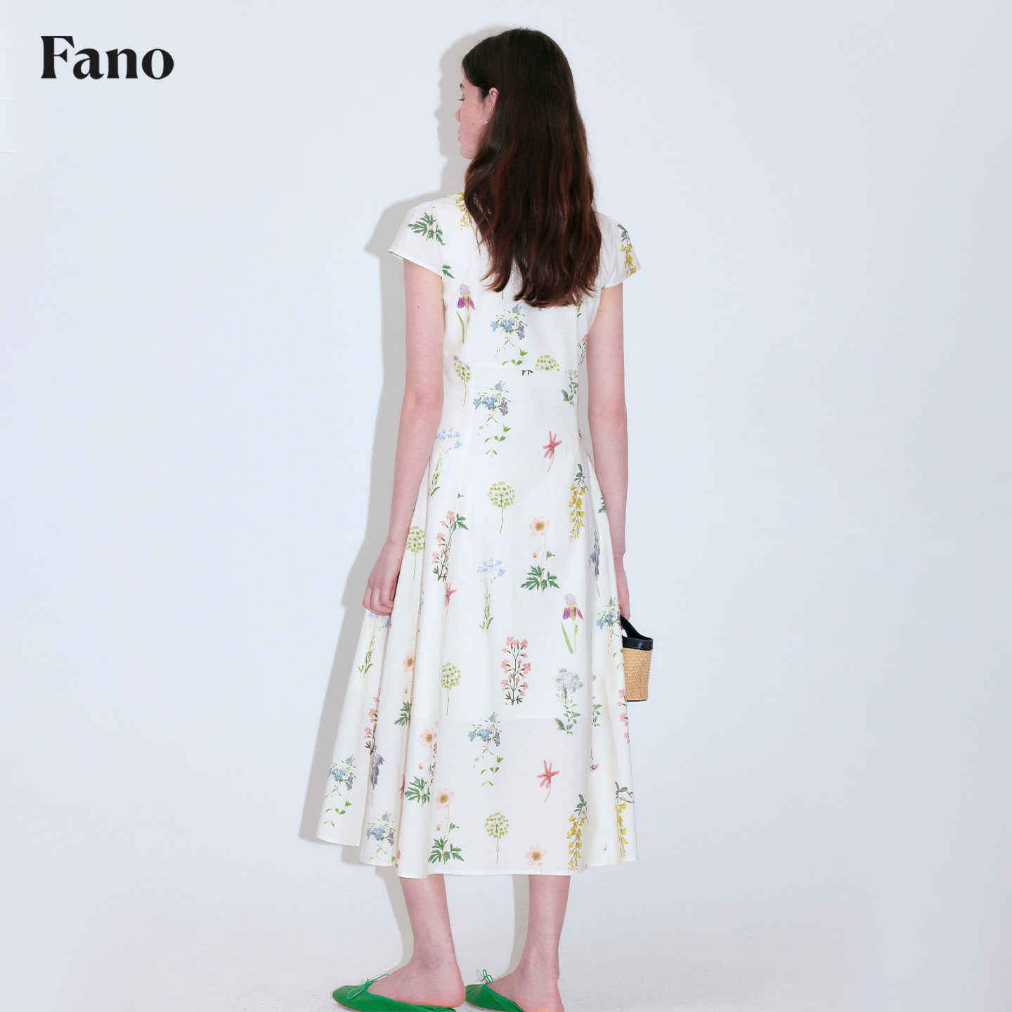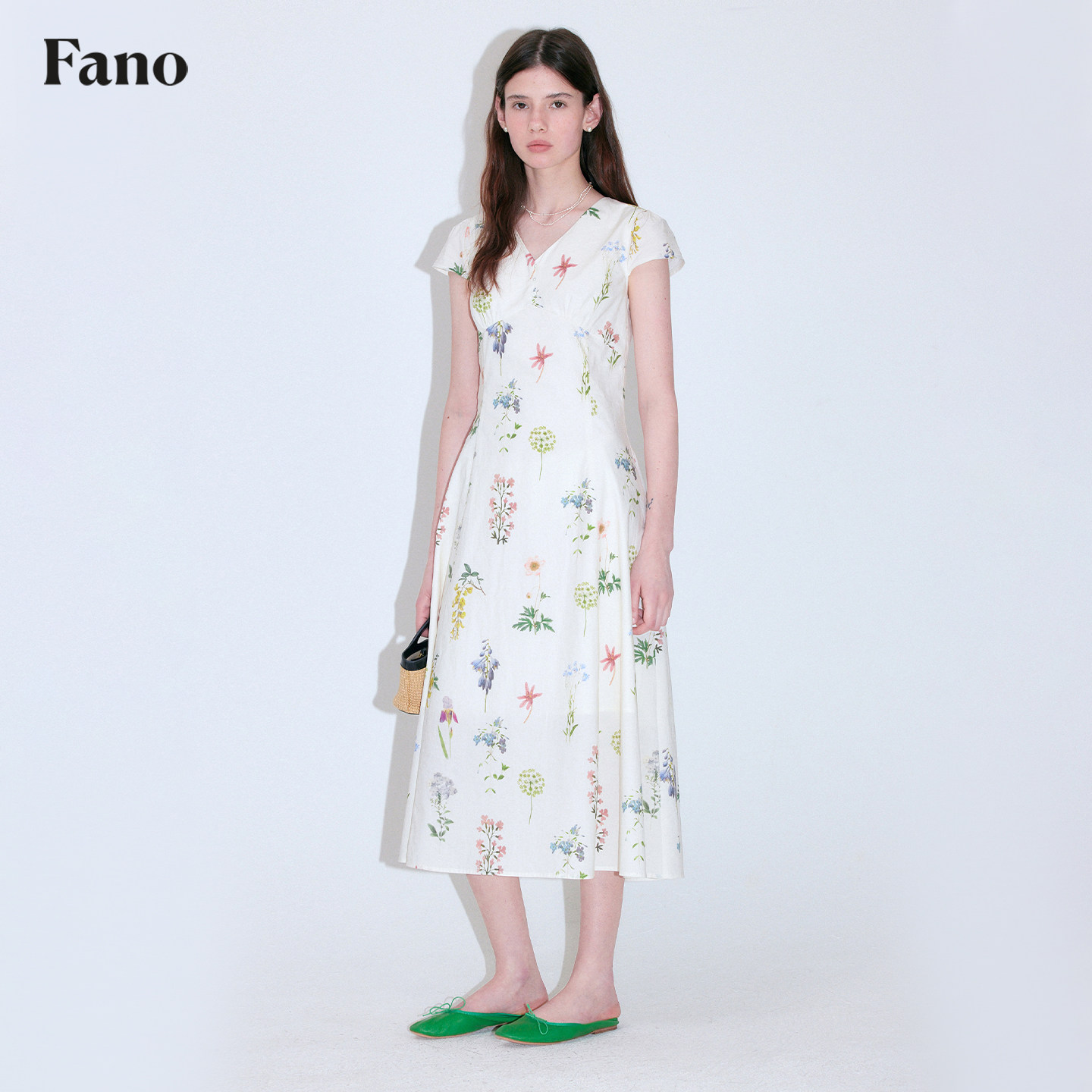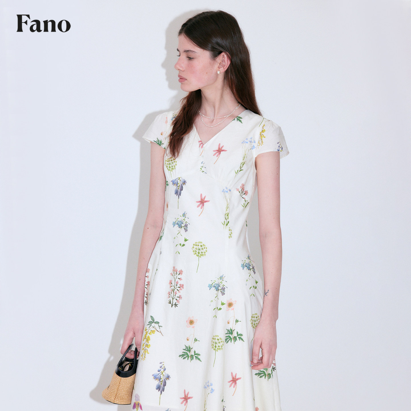 范洛Fano 法式田园浪漫满印花束泡泡飞袖V领显瘦连衣裙女夏高级感