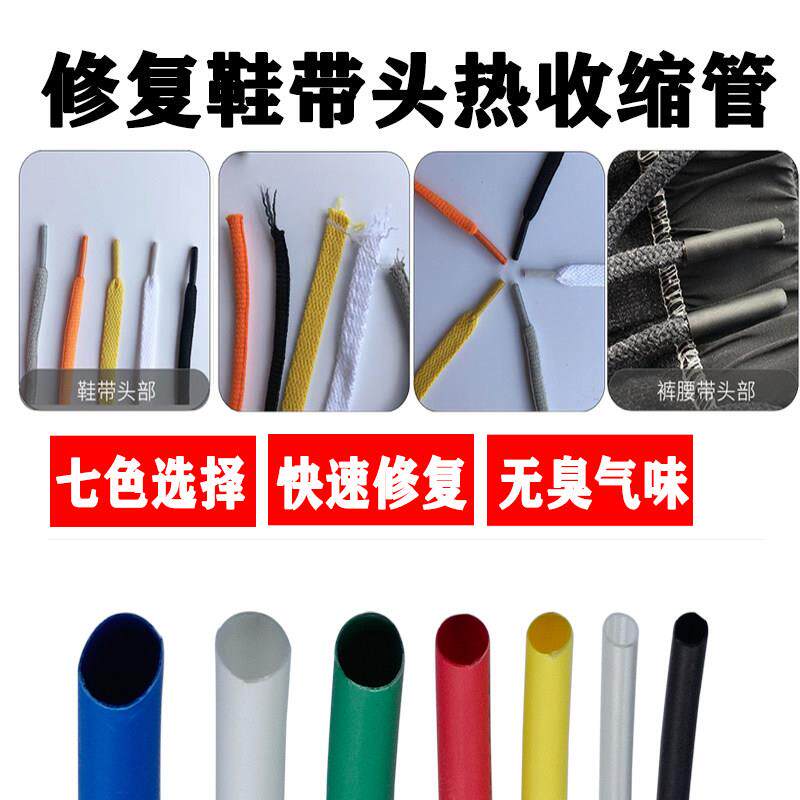 鞋带头封口裤腰绳头修覆胶管套套鞋带头保护套管黑色透明热缩管