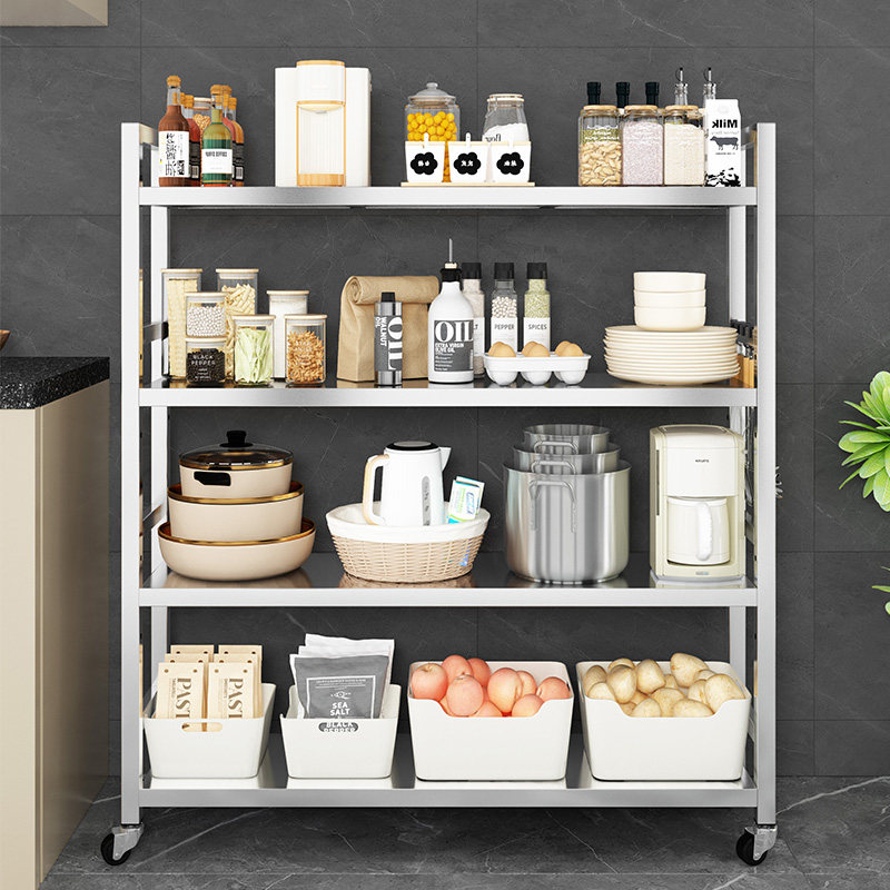 可移动不锈钢夹缝置物架厨房冰箱窄缝隙多层储物书架阳台收纳架子