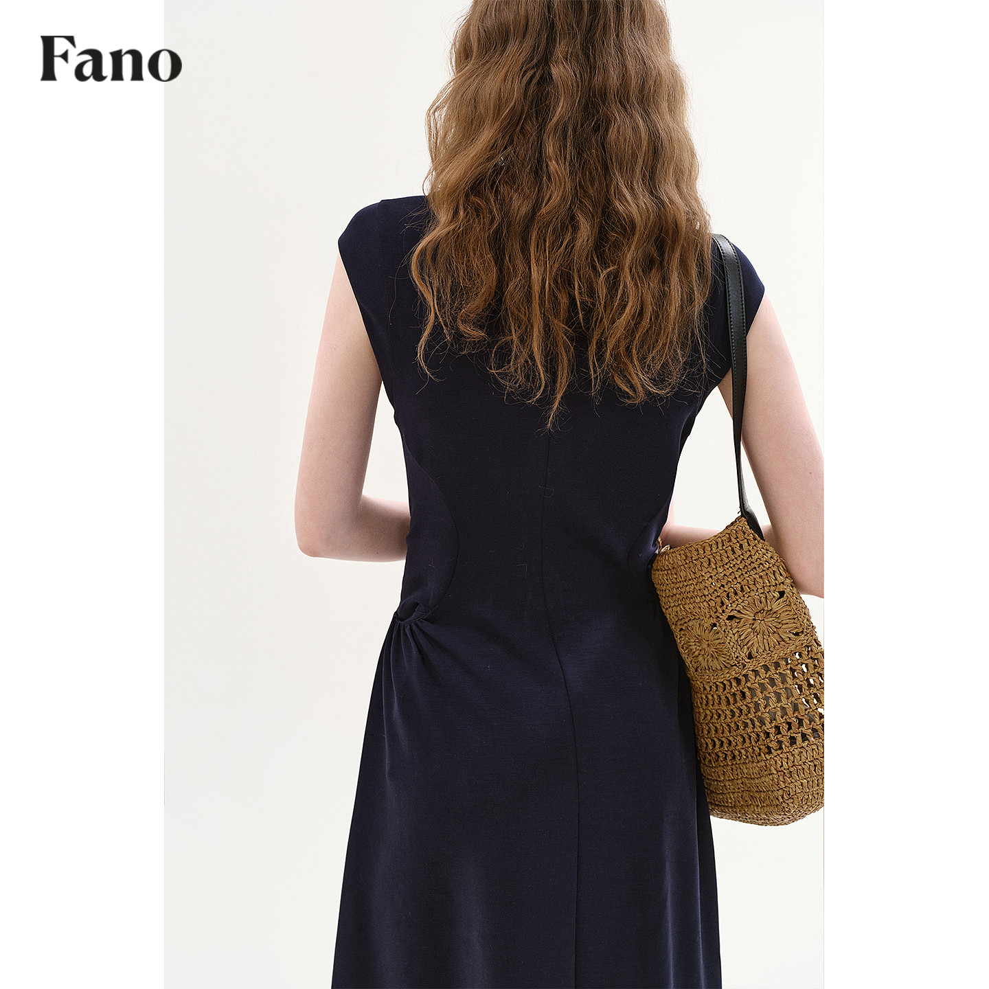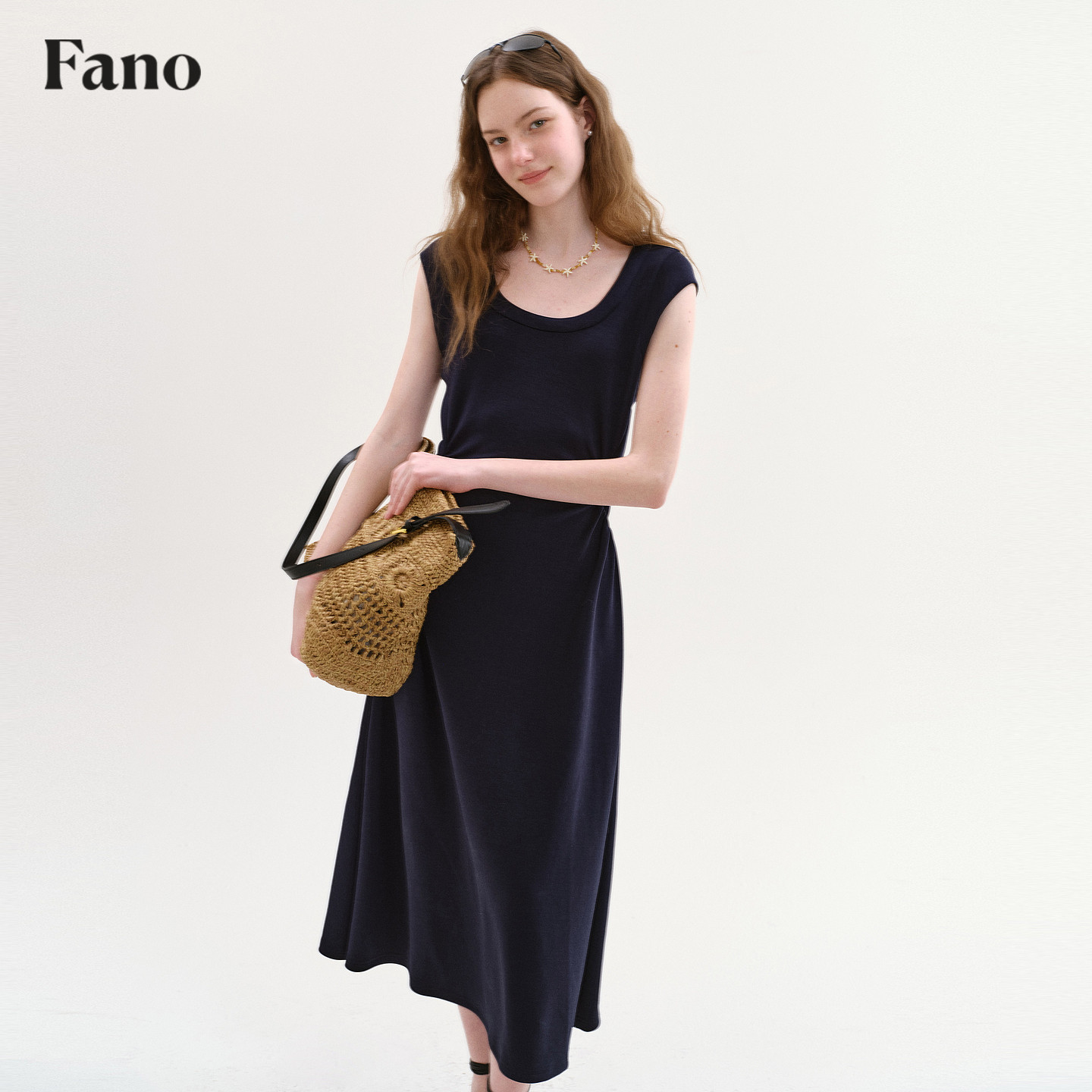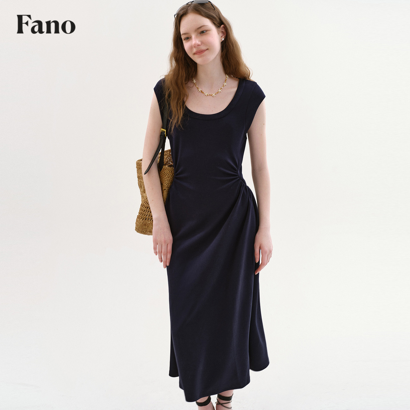 范洛Fano 法式松弛感收腰连衣裙女2026春季新款U领小飞袖A字长裙