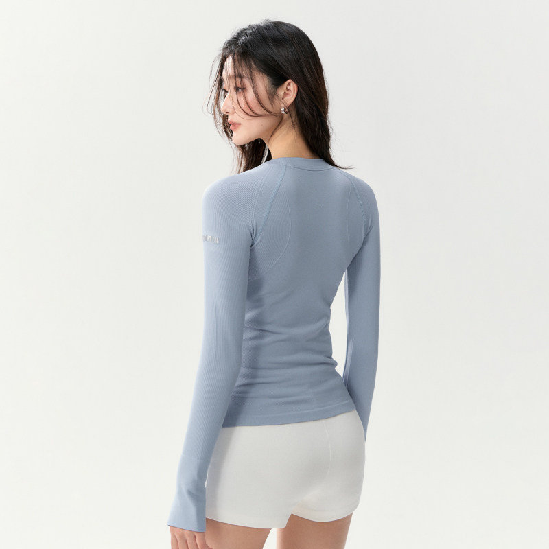 健身服长袖女跑步修身吸汗速干衣普拉提训练服套装运动瑜伽服上衣