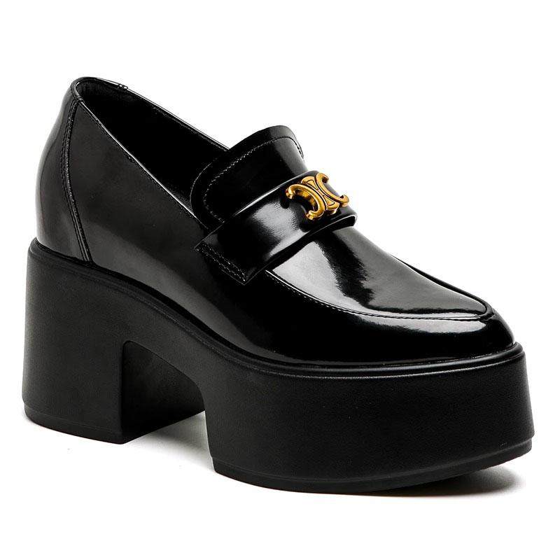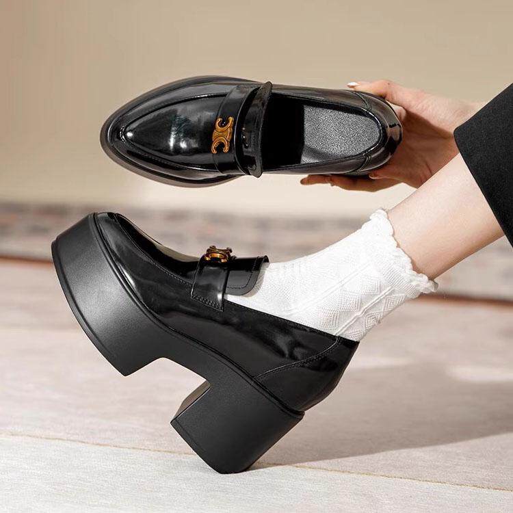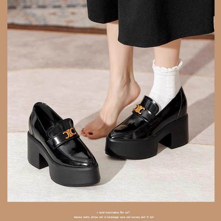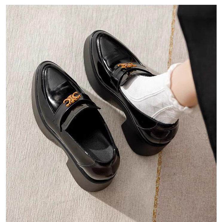 2025新款乐福鞋女13厘米小个子内增高全牛真皮厚底休闲超高跟尖头