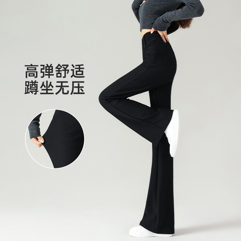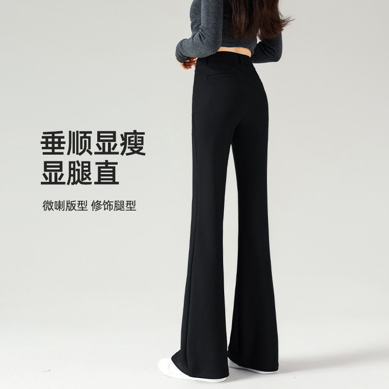 高个子加长款加绒微喇裤女冬季2026新款加厚黑色西装垂感喇叭裤子