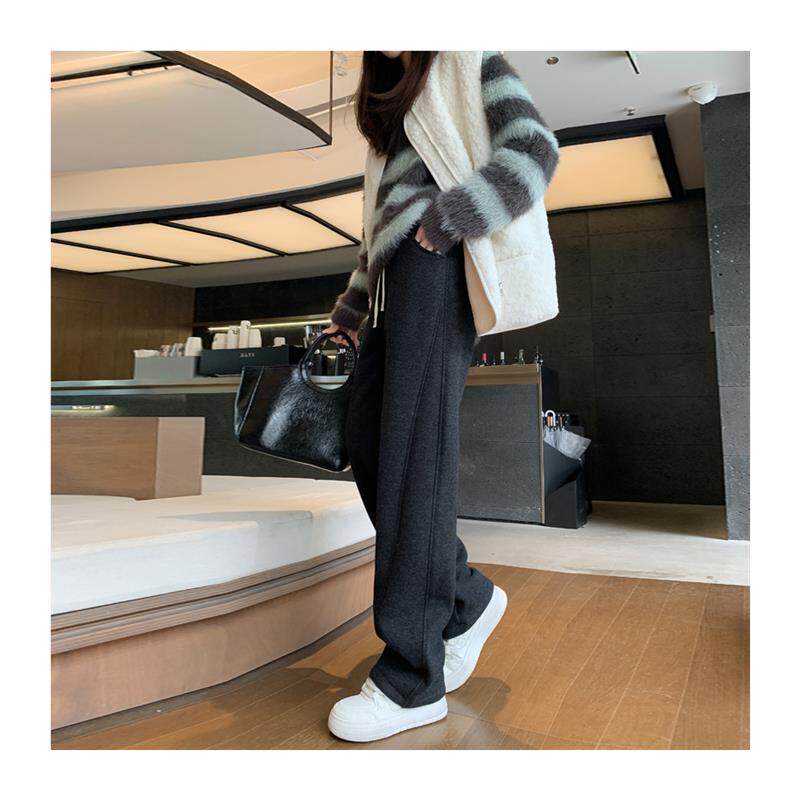 加绒加厚阔腿裤女2025新款白色加长版高个子女裤秋冬直筒裤子冬季
