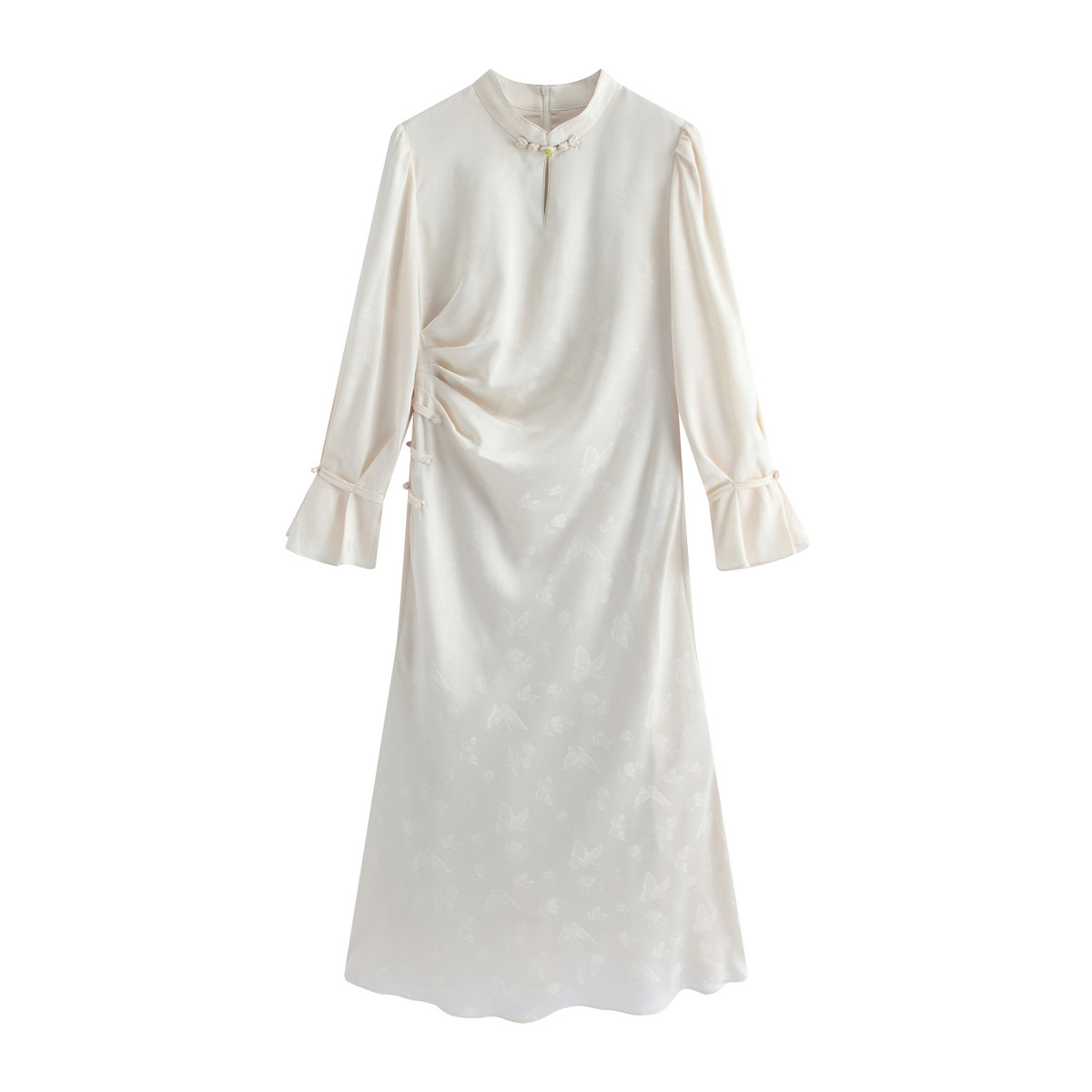 311线报网描述:中国风立领长袖旗袍 提花中长气质连衣裙