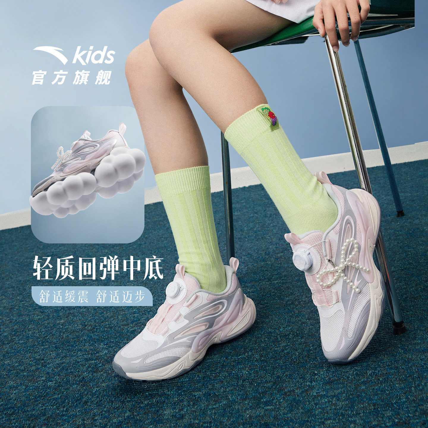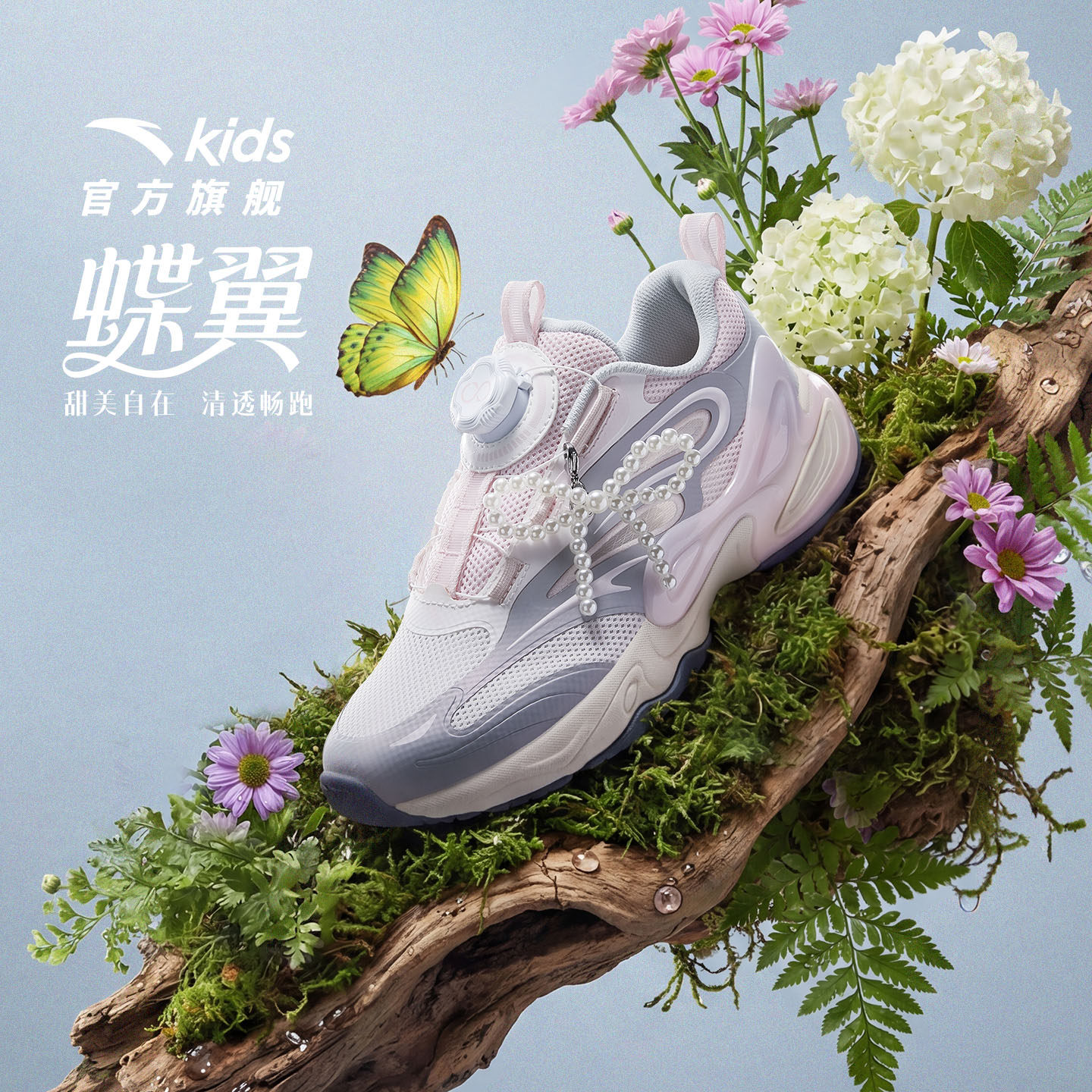 蝶翼|安踏女童鞋2026夏季旋钮扣网面运动鞋大童透气休闲鞋女