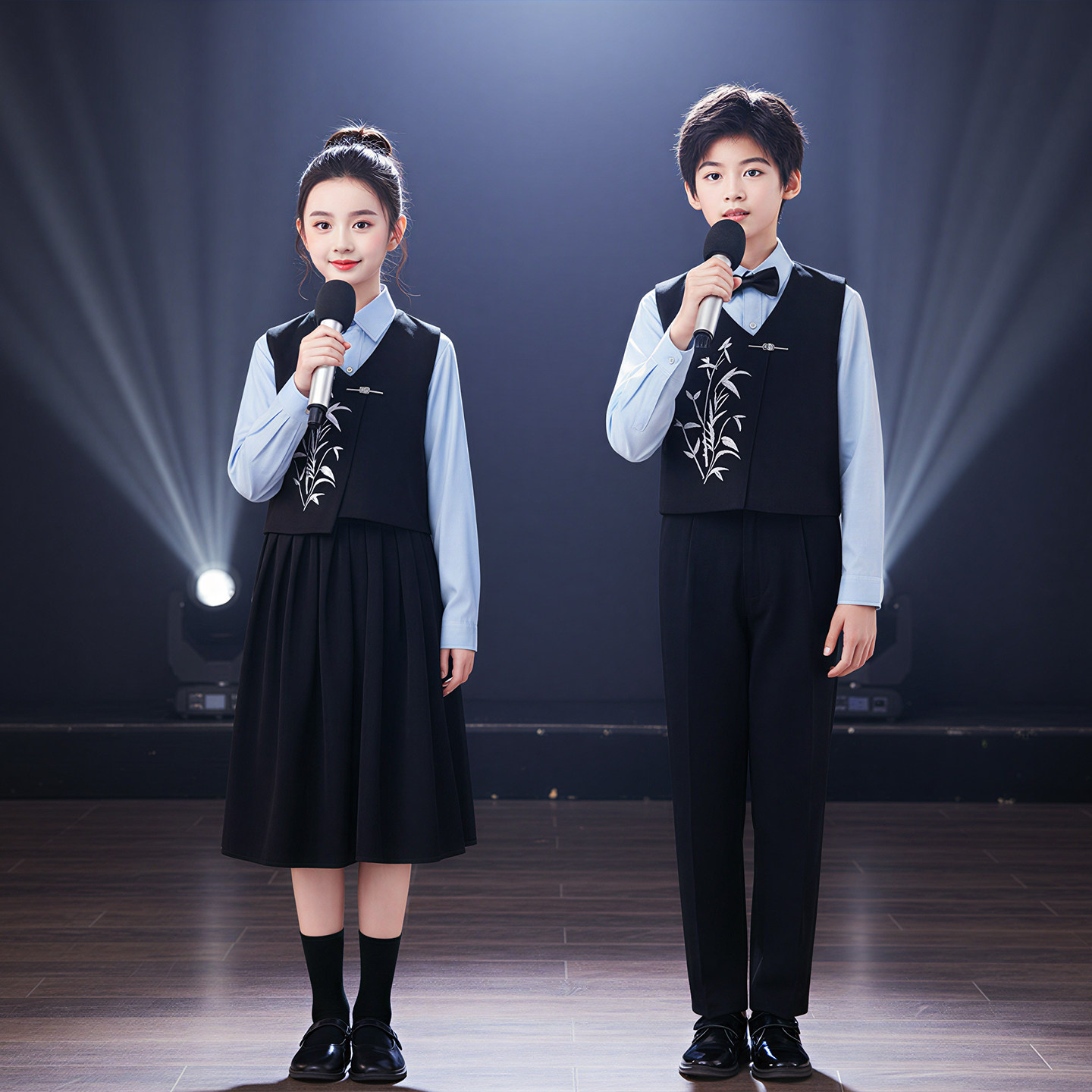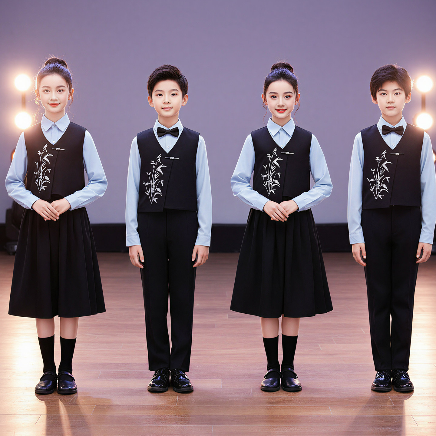 元旦儿童中小学生爱国合唱演出服国风演讲朗诵比赛服装男女童礼服