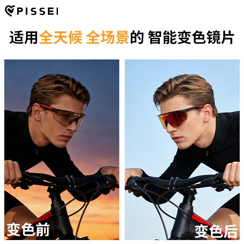 PISSEI皮塞超轻感光变色骑行眼镜马拉松登山户外运动太阳镜防风男