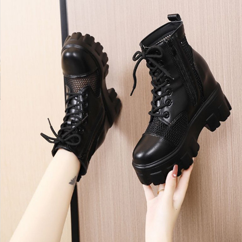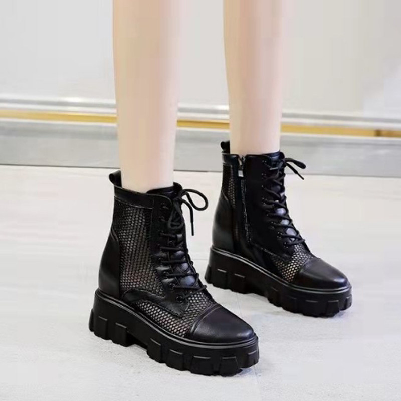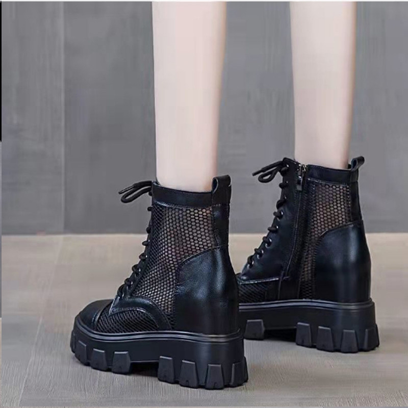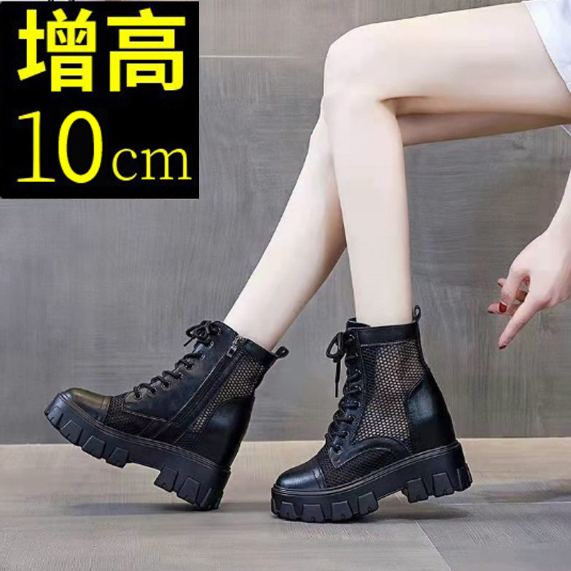 2024马丁靴女夏季薄款内增高网面新款小个子10cm显高透气夏天短靴