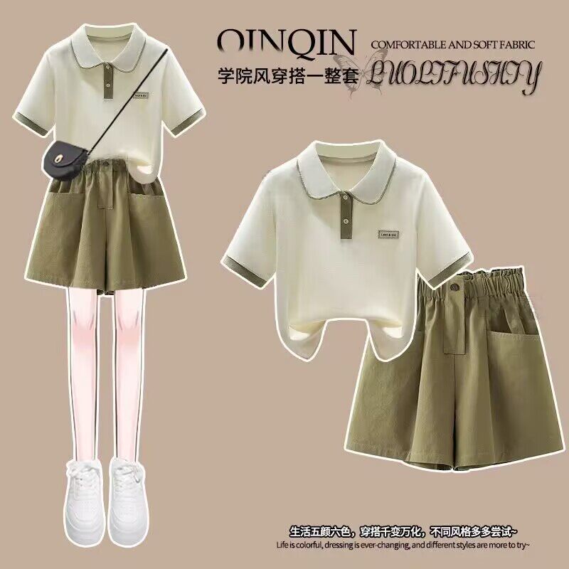 女童夏季短袖2025新款洋气时尚儿童POLO衫夏装T恤青少年休闲套装