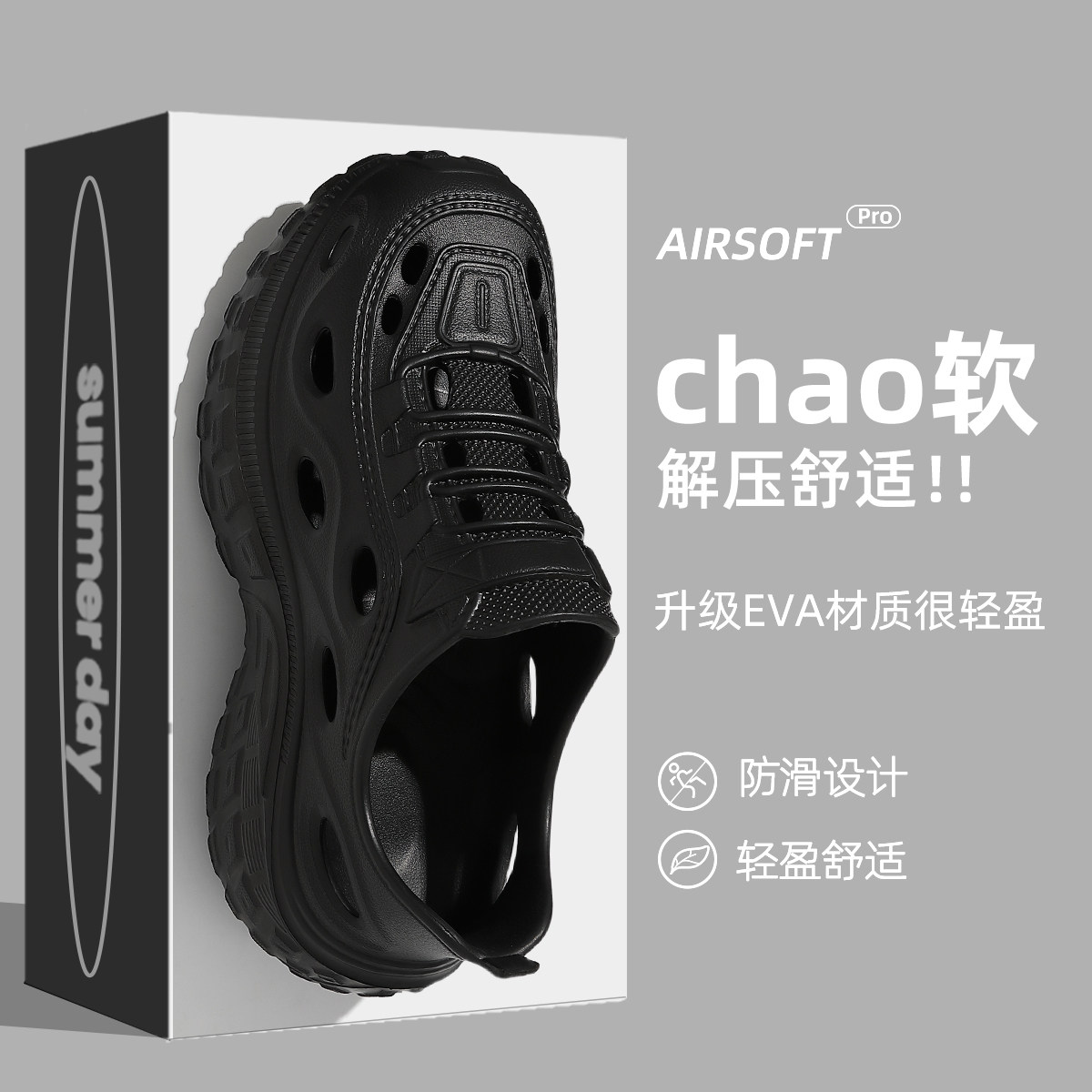 踩屎感洞洞鞋男款夏季外穿厚底防滑防臭透气凉鞋沙滩运动拖鞋男士