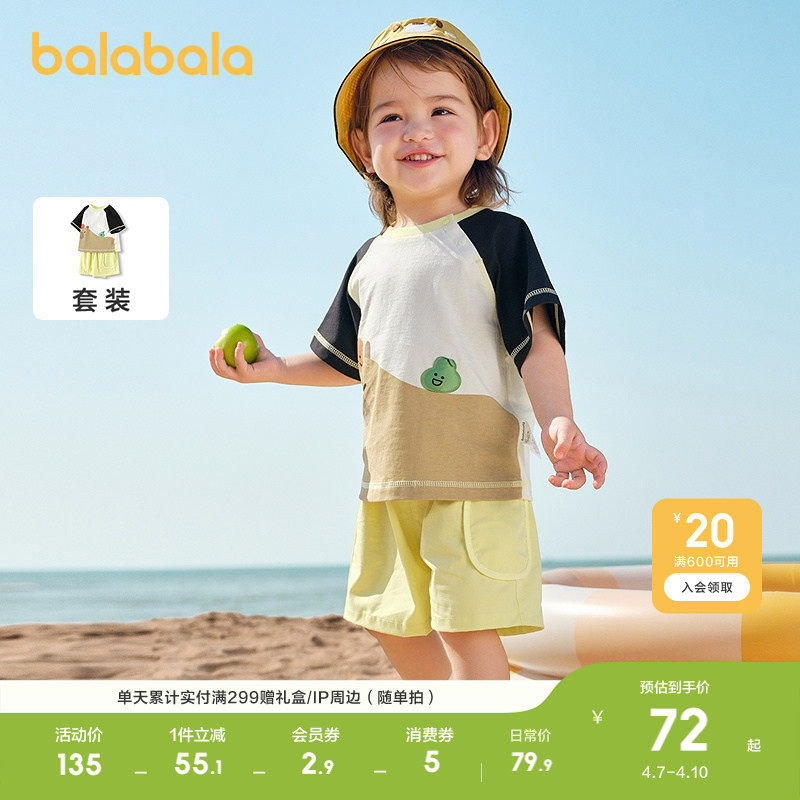 巴拉巴拉宝宝短袖套装男童夏装女童洋气两件套2026休闲时尚清新萌