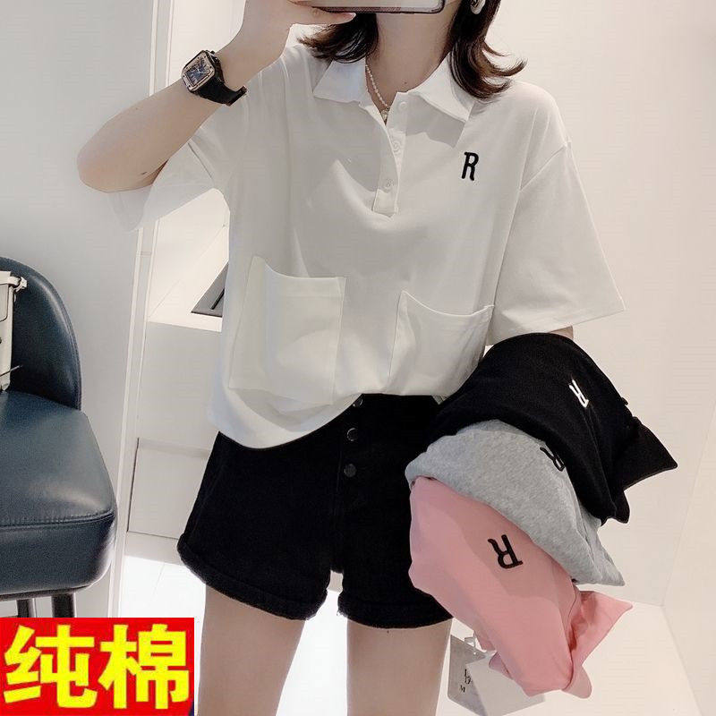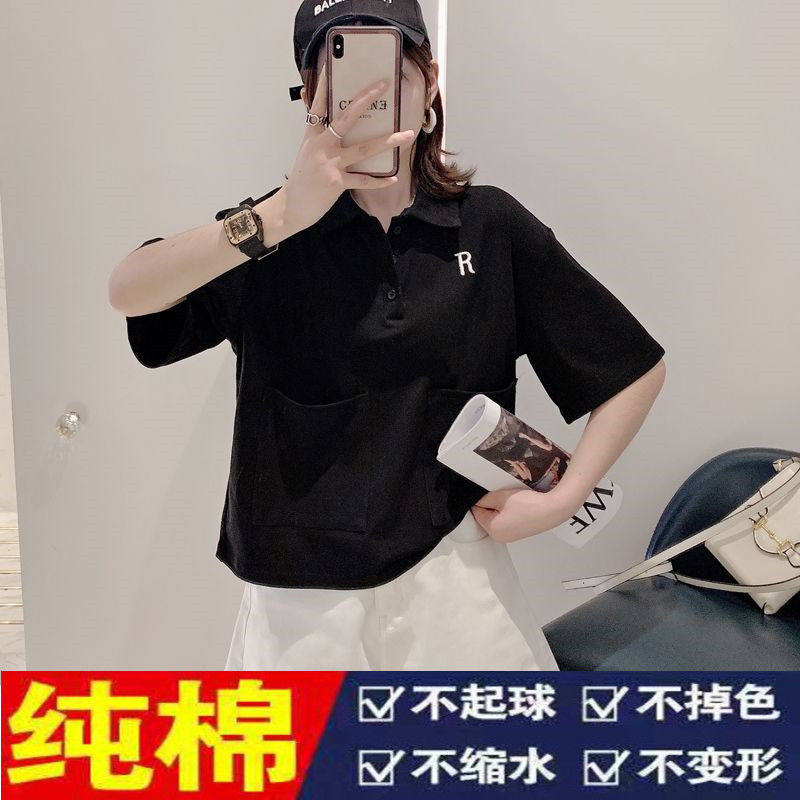 纯棉短袖t恤女宽松短款Polo领上衣2026新款夏季百搭气质洋气减龄