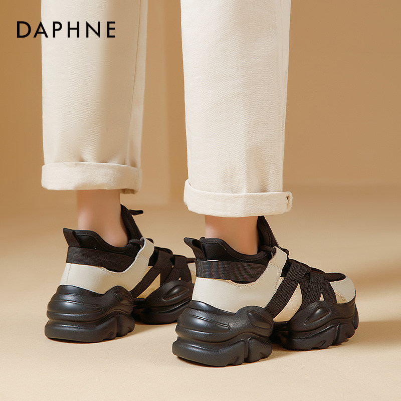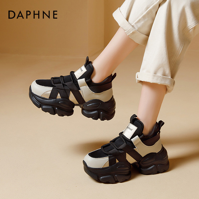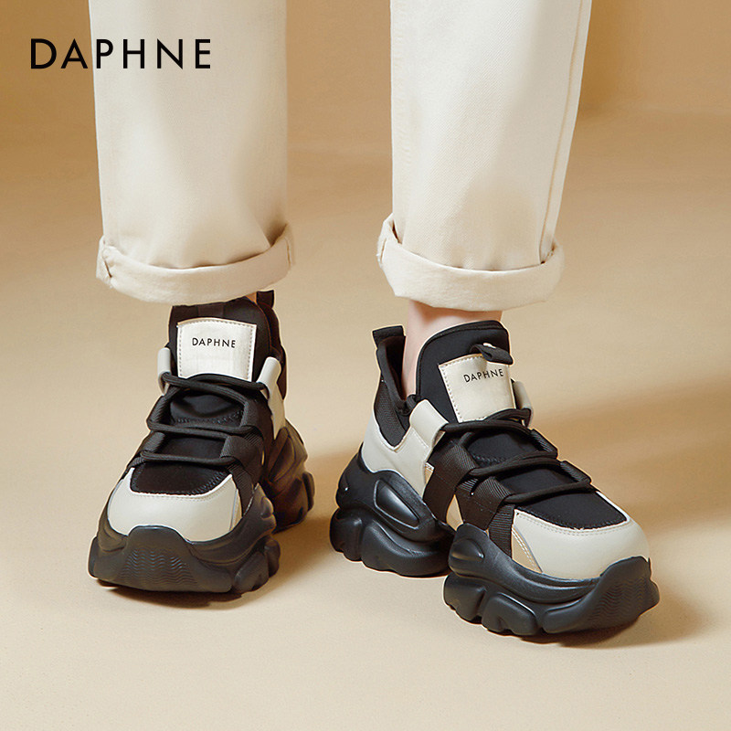 达芙妮厚底高帮鞋老爹鞋女款2026新款春季鞋子女鞋黑色增高运动鞋