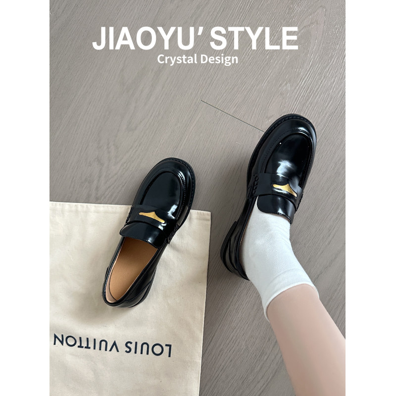真皮~骄屿复古乐福鞋新款百搭粗跟圆头通勤单鞋英伦风擦色小皮鞋