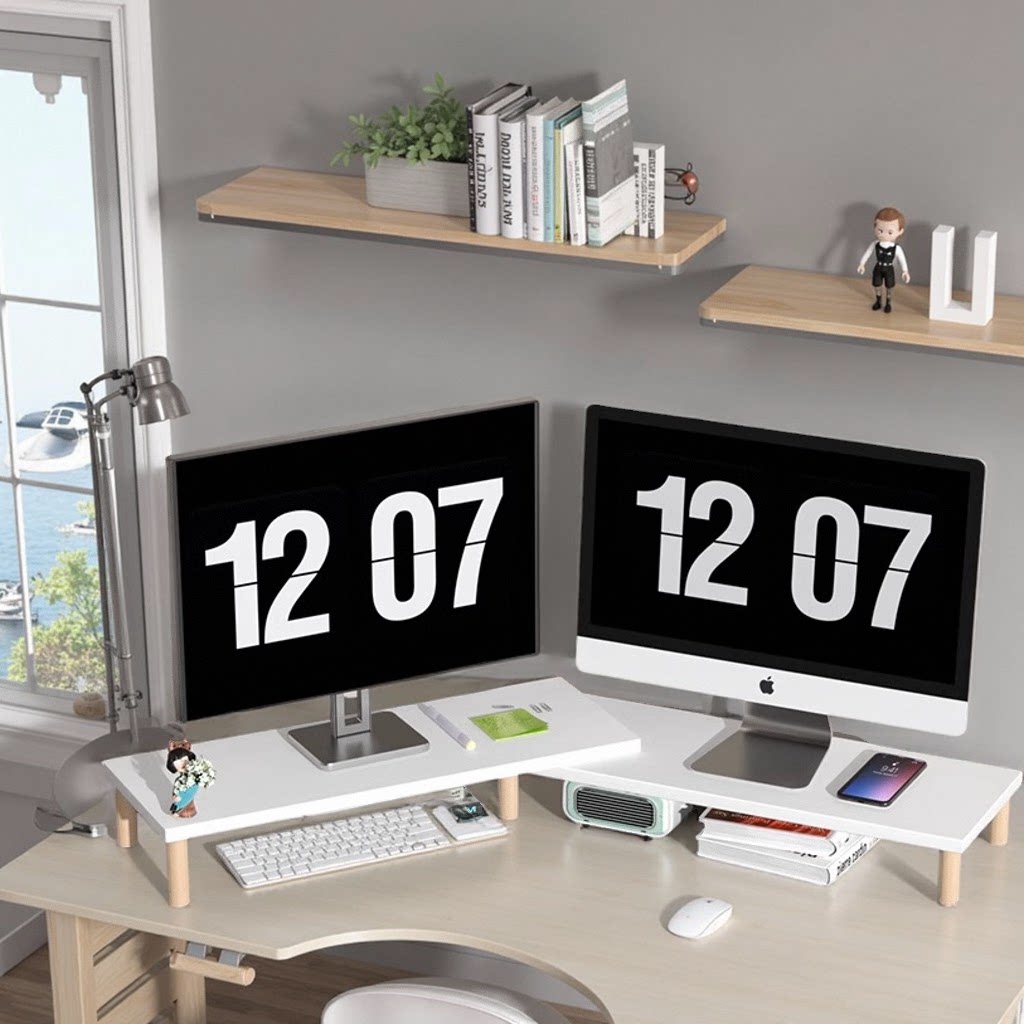 双屏电脑显示器增高架办公桌面支架加长木架子屏幕底座垫高托架