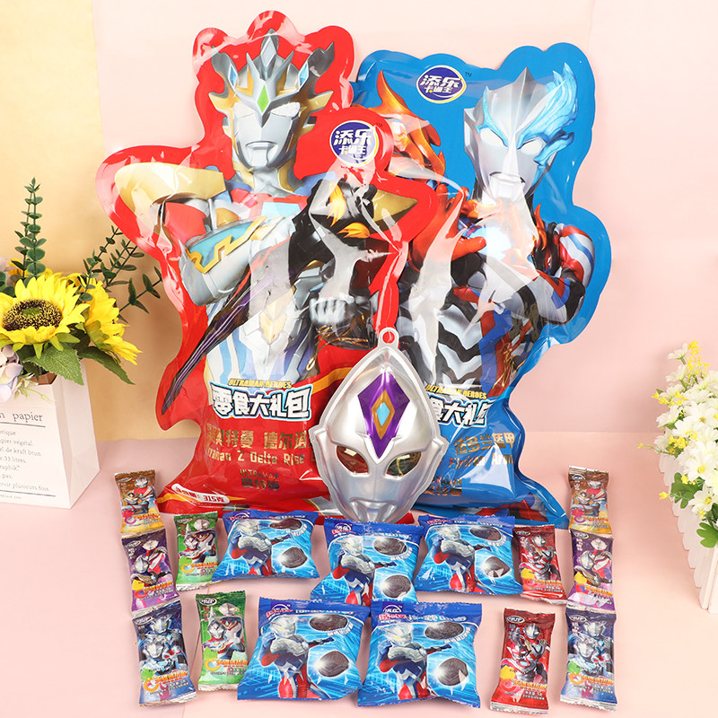 添乐卡通王奥特曼零食大礼包送面具男孩生日节日礼品男童儿童礼物