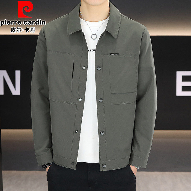 皮尔卡丹翻领男士夹克衫春秋季外套2025新款秋冬装百搭休闲男款厚