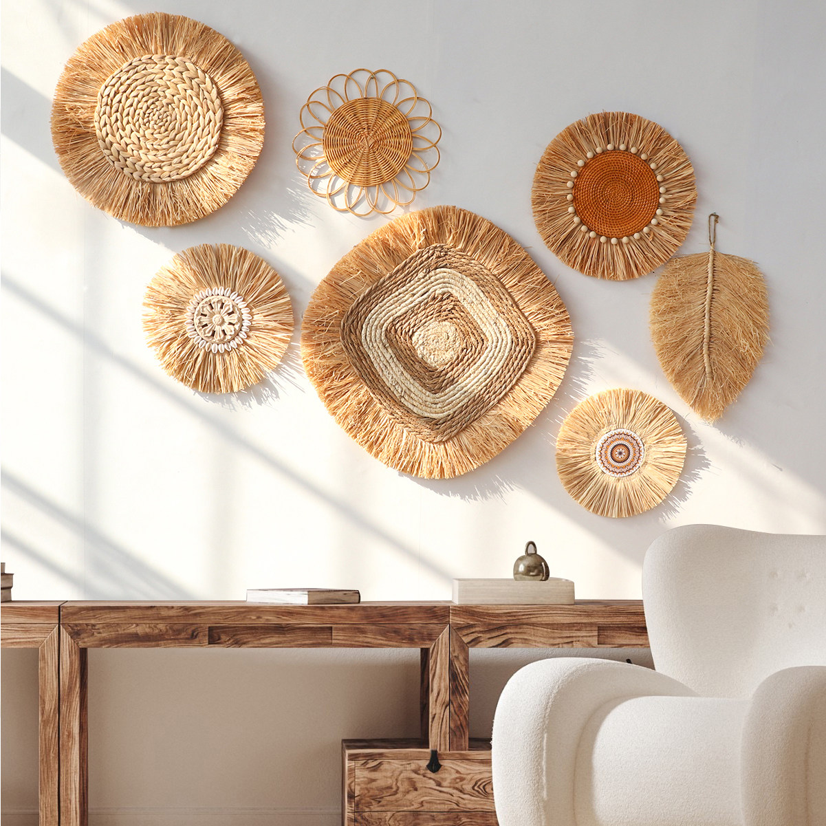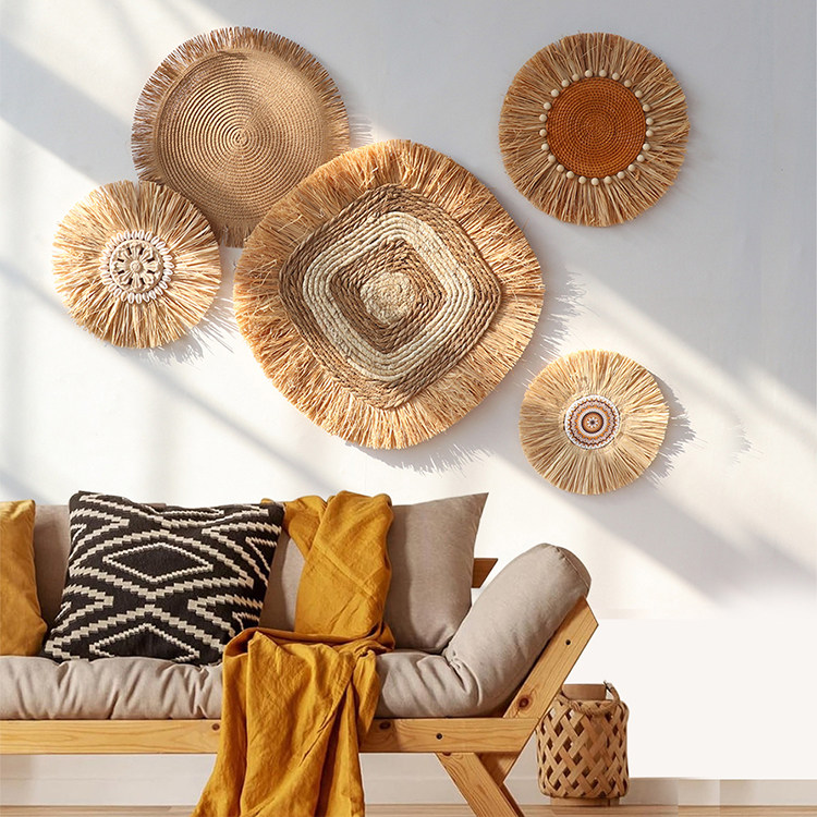 新品日式波西米亚风拉菲草编藤编民宿墙面挂饰客厅卧室背景墙装饰