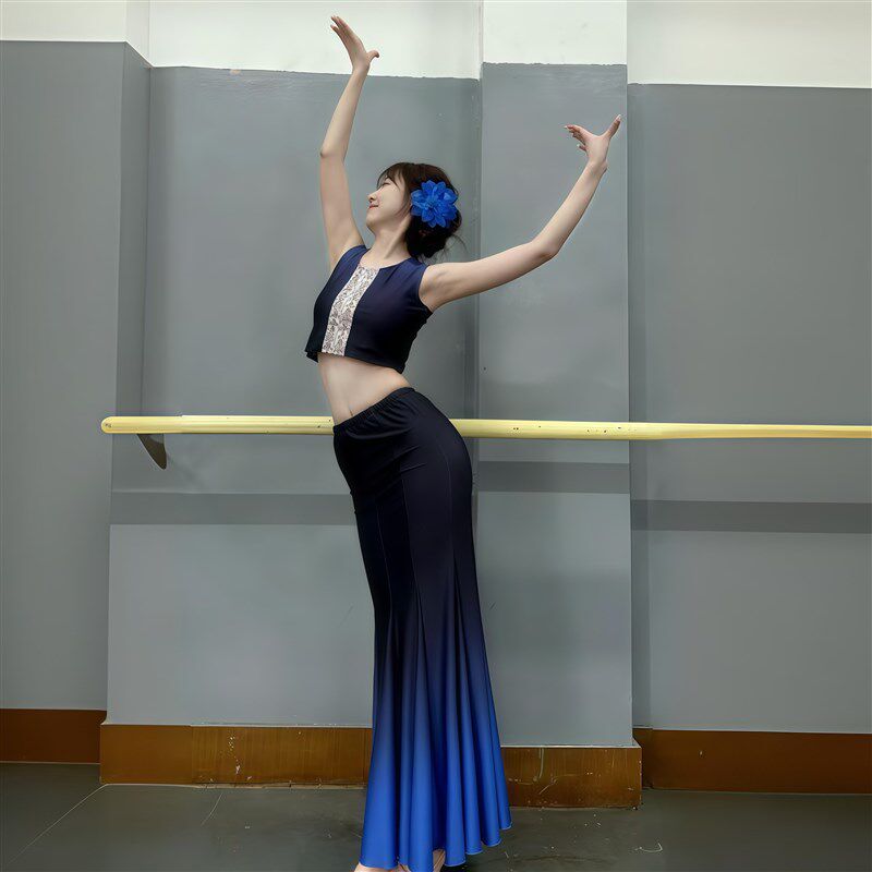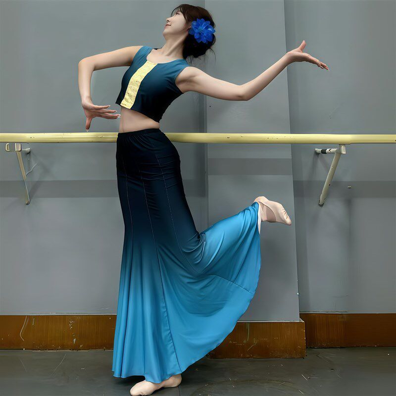 新款傣族舞蹈成人双肩演出服练功裙表演服女N渐变舞裙艺考服装孔