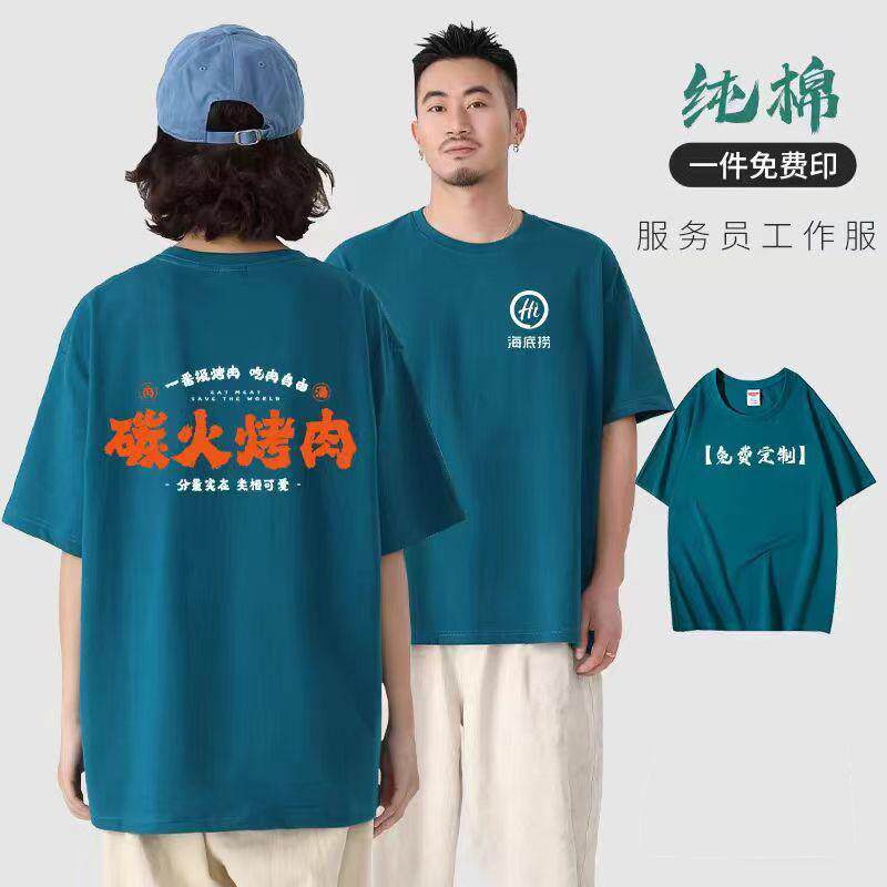 重磅纯棉T恤定制印logo圆领文化衫diy订做夏季短袖高端工作服刺绣