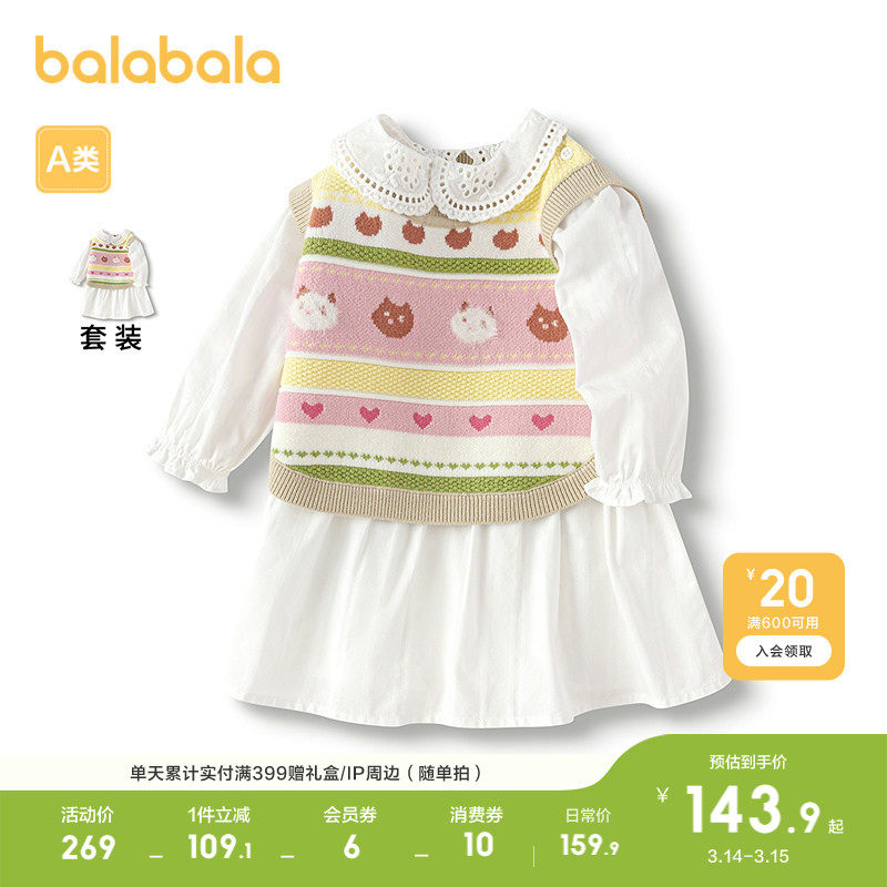 巴拉巴拉童装儿童宝宝套装女童连衣裙子两件套2026春秋装新款针织