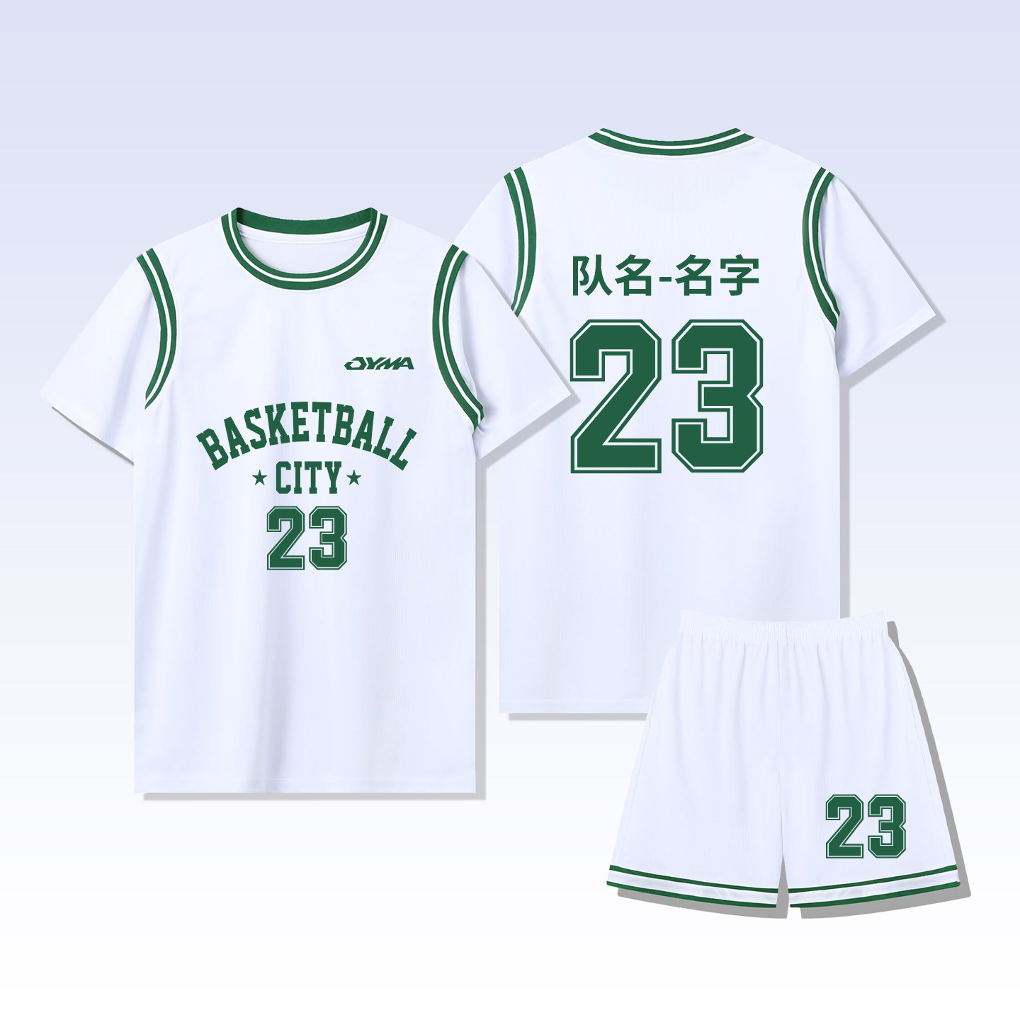 绿色假两件篮球服套装定制男女学生速干运动训练队服儿童班服短袖