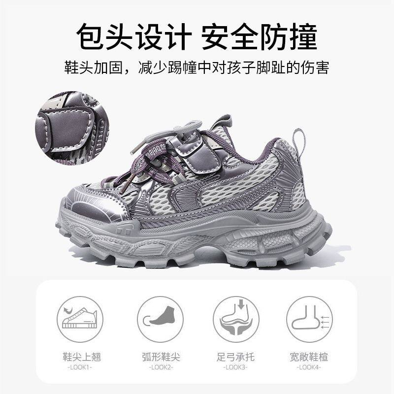 芭芭鸭女童鞋2026新款春季儿童运动鞋男童老爹鞋网面透气跑步鞋子