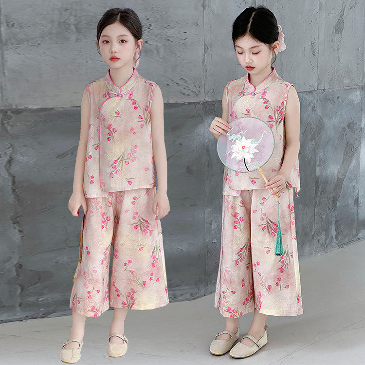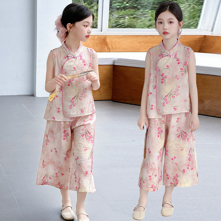 女童新中式汉服套装夏季2026新款洋气时髦国风小女孩粉色儿童夏装