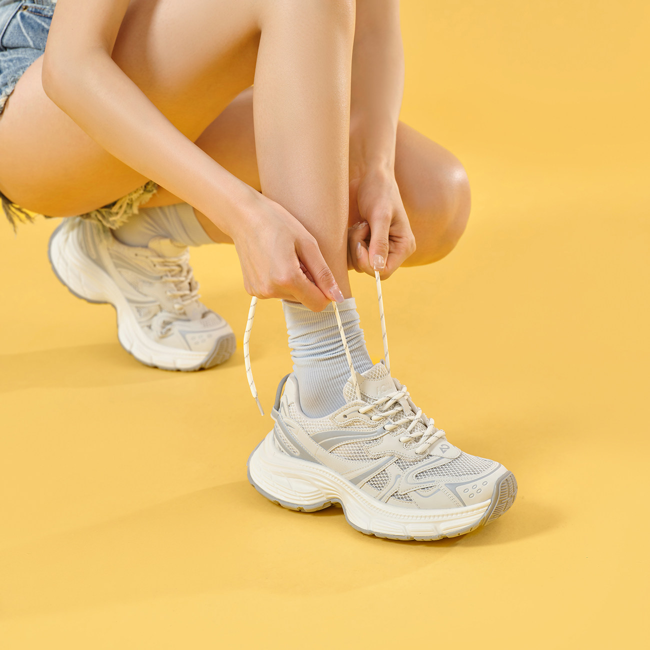 奥康 女鞋春秋老爹鞋炸街网面透气潮流厚底增高休闲运动鞋