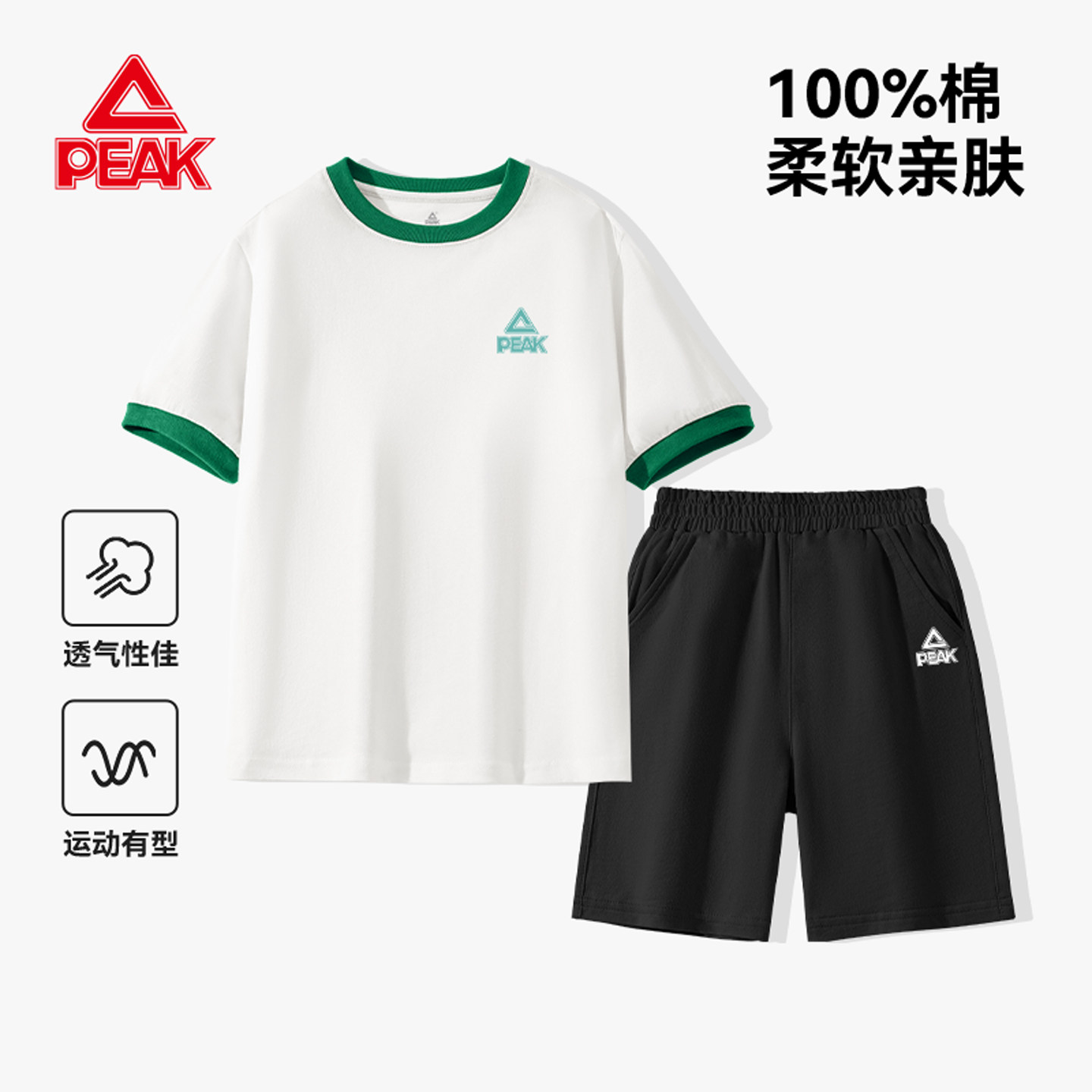 匹克童装女童短袖套装夏季2026新款纯棉t恤黑色短裤儿童运动衣服