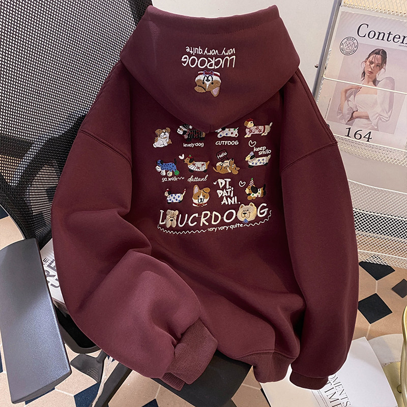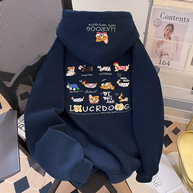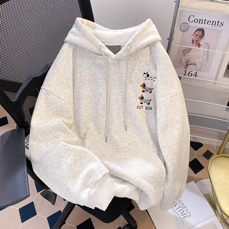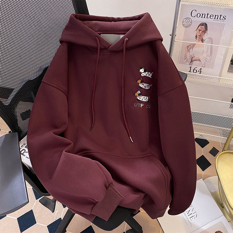 秋冬季大码胖mm女士卫衣女款2026新款加绒加厚刺绣连帽高级感上衣