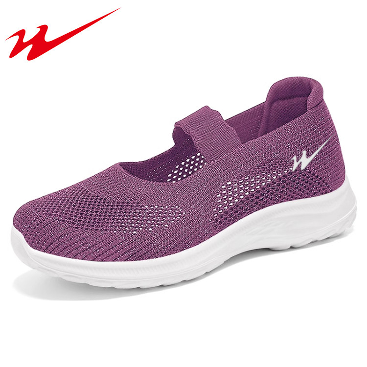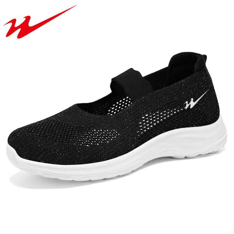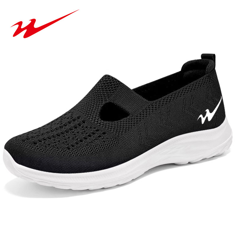 双星老人鞋一脚蹬女鞋中老年妈妈运动鞋软底夏季透气网面鞋