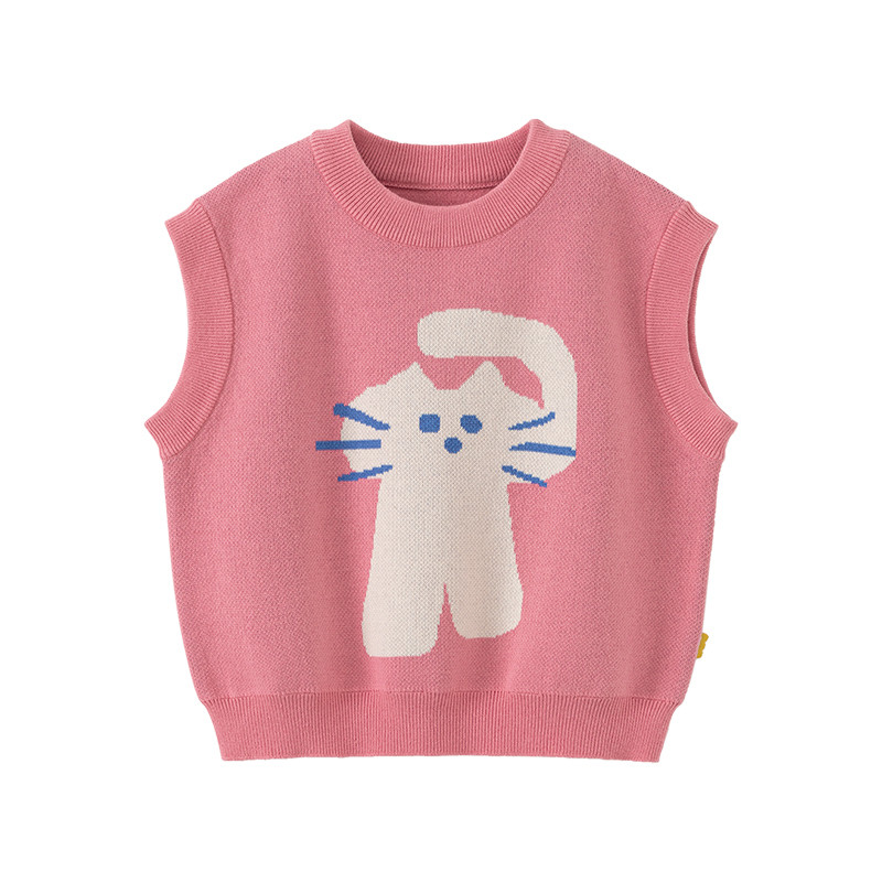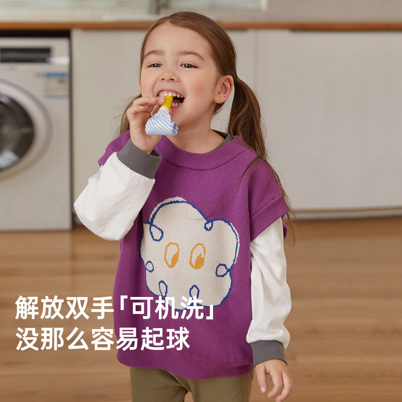 papa爬爬秋季儿童针织马甲男女童纯棉套头毛衣背心薄款洋气百搭