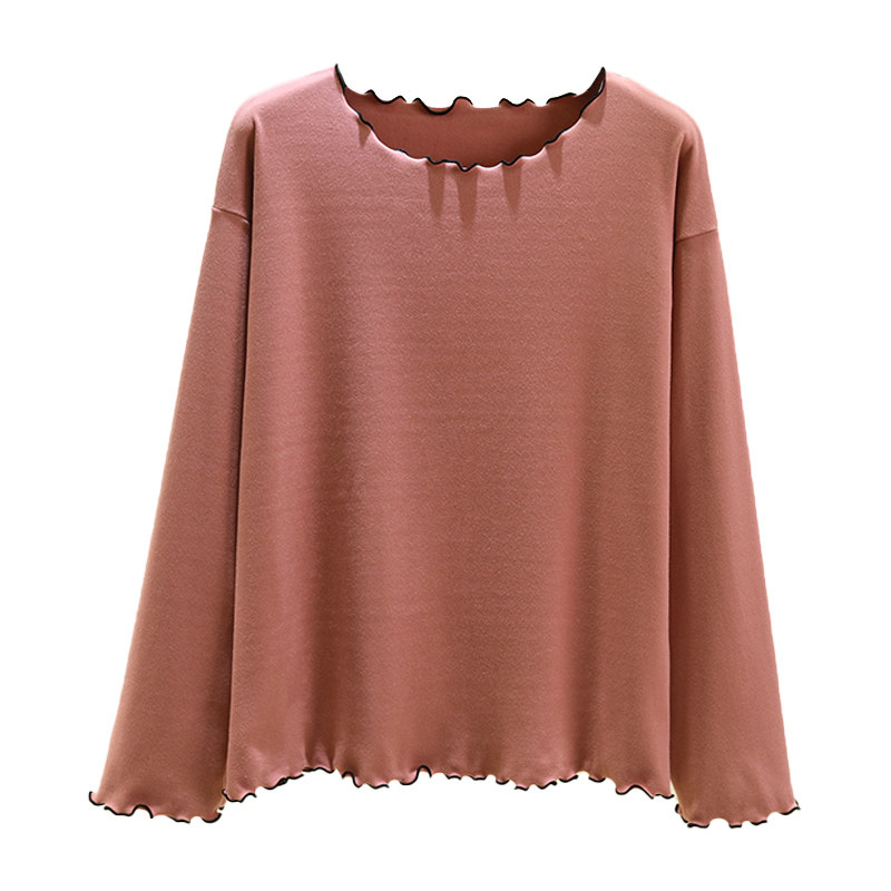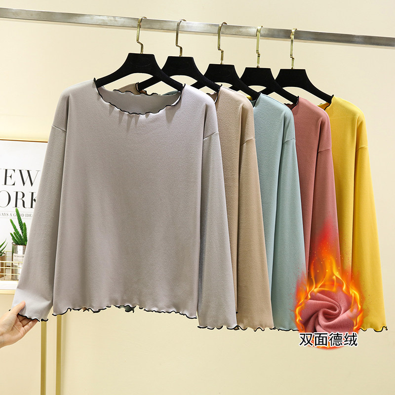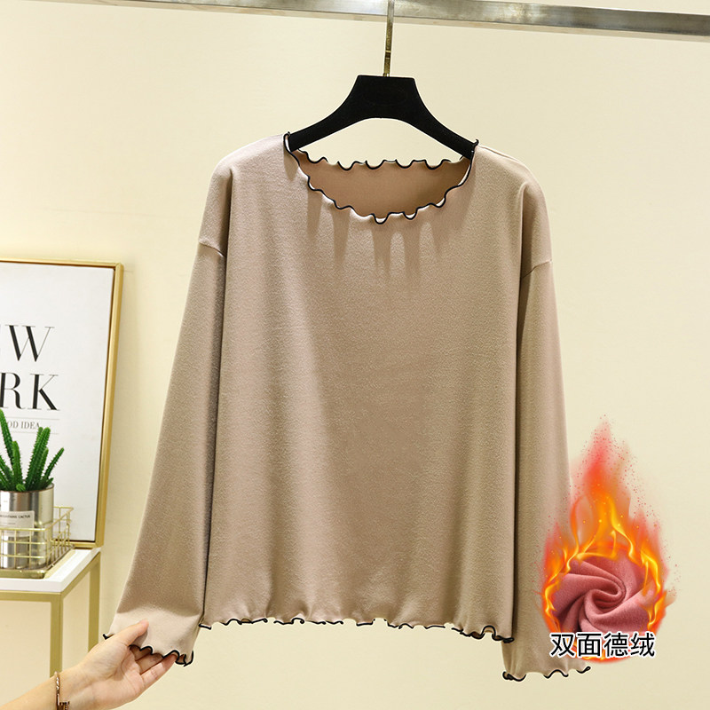 加绒打底衫女秋冬大码德绒花边家居服可外穿加厚防寒t恤宽松上衣